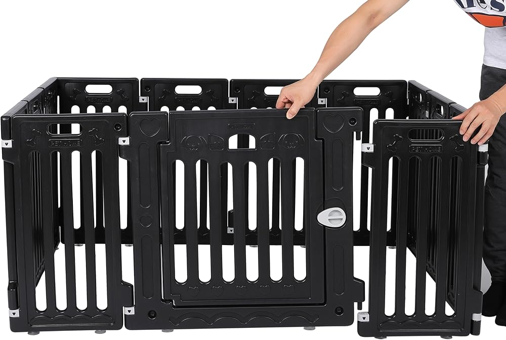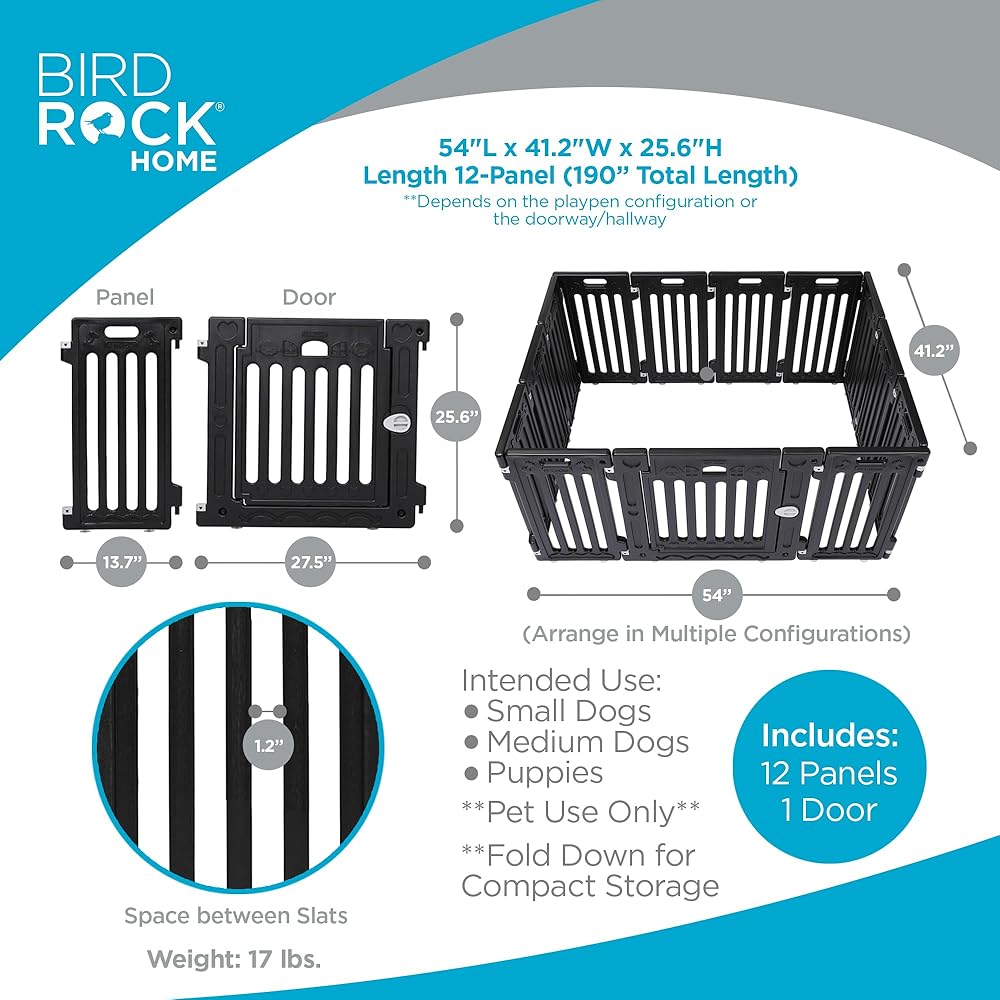 • تكوين متعدد الاستخدامات: يتضمن 12 لوحة قابلة للتعديل وبابًا لإنشاء العلبة المثالية لحيوانك الأليف. قم بتخصيص الشكل والحجم ليناسب أي تصميم للغرفة أو منطقة خارجية.