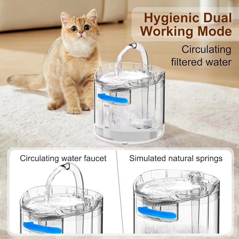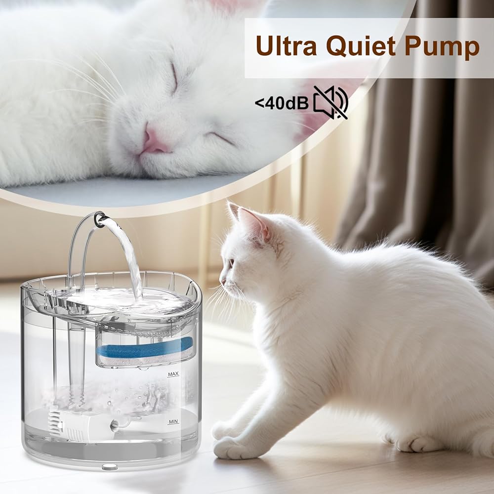 نافورة مياه للقطط، نوافير مياه سعة 85 أونصة/2.5 لتر للقطط في الأماكن المغلقة، موزع مياه أوتوماتيكي للقطط والكلاب والحيوانات الأليفة المتعددة