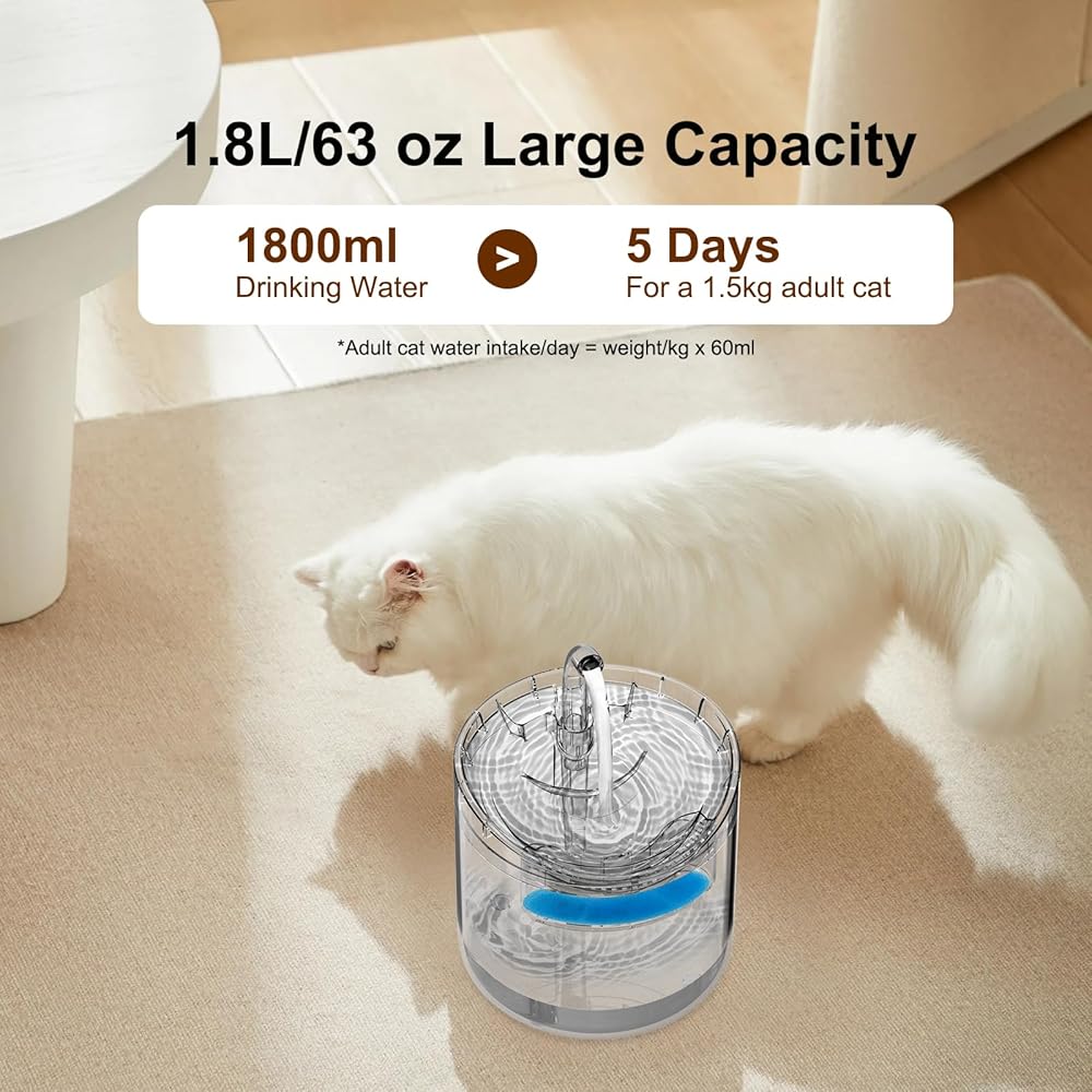 • 【خزان مياه كبير السعة 1.8 لتر】نافورة مياه الحيوانات الأليفة ذات الترشيح الفائق بسعة هائلة تبلغ 1.8 لتر (63 أونصة)! هذه كمية كافية من الماء لإبقاء صديقك ذو الفراء رطبًا لمدة تصل إلى أسبوع دون الحاجة إلى إعادة التعبئة بشكل مستمر. لا مزيد من الركض ذهابًا وإيابًا لتعبئة الماء. حافظ على سعادة حيوانك الأليف وترطيبه باستخدام هذا الموزع المريح!