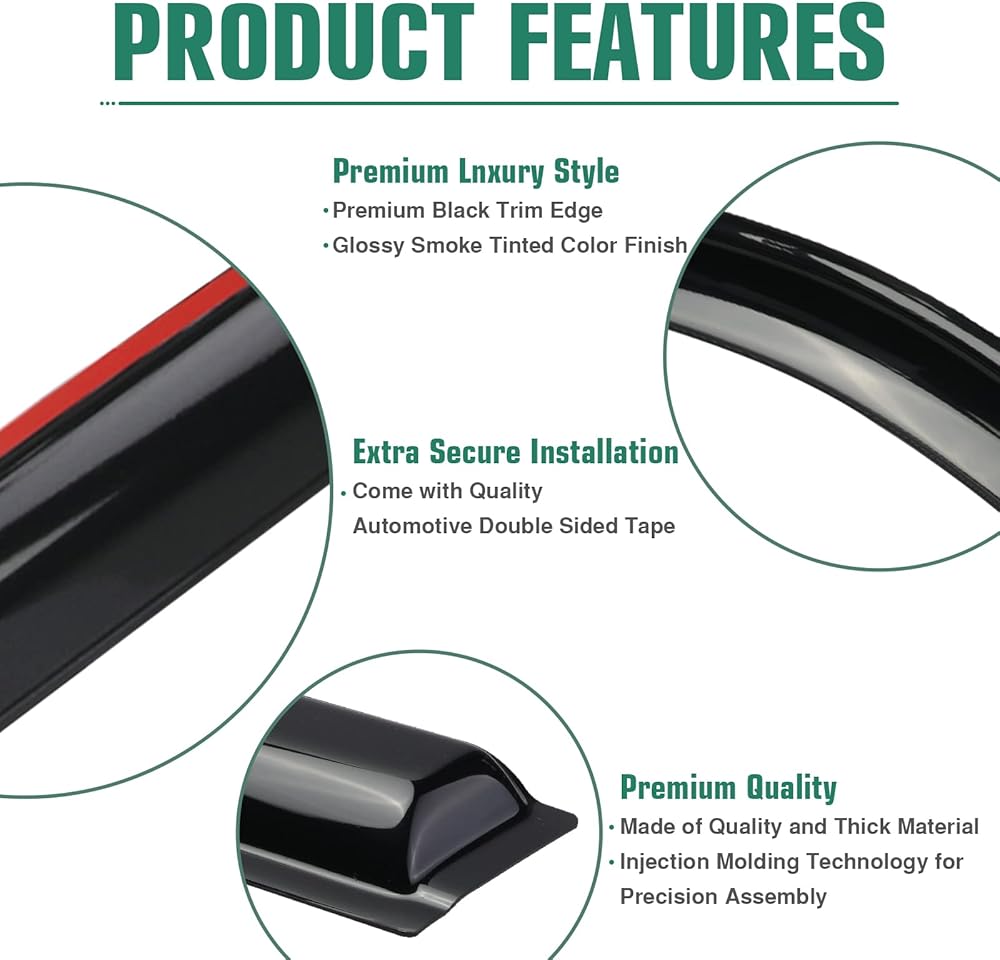 • 💕𝐖𝐨𝗿𝗸𝗶𝗻𝗴 𝗣𝗿𝗶𝗻𝗰𝗶𝗽𝗹𝗲:تعمل منحرفات النوافذ الجانبية على تغيير تدفق الهواء في سيارتك مع الحفاظ على الوهج والمطر. فهي تسمح لسيارتك بالتهوية الجيدة وتقلل من الحاجة إلى استخدام مكيف الهواء.