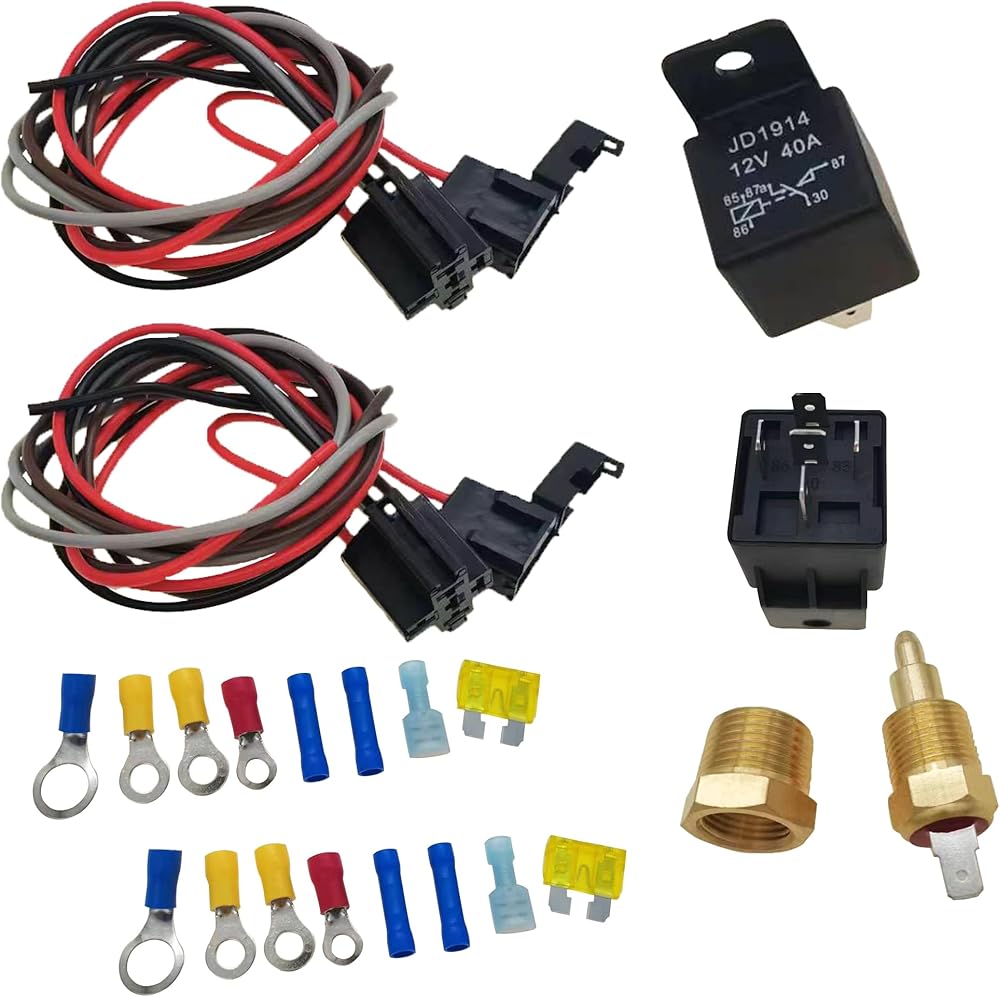 مجموعة ترموستات مروحة التبريد الكهربائية، مجموعة ترحيل المروحة الكهربائية مع مفتاح مستشعر مروحة الرادياتير الحراري، مفتاح مستشعر درجة الحرارة 185 تشغيل 175 إيقاف، مجموعة تتابع مقاومة للماء 40 أمبير