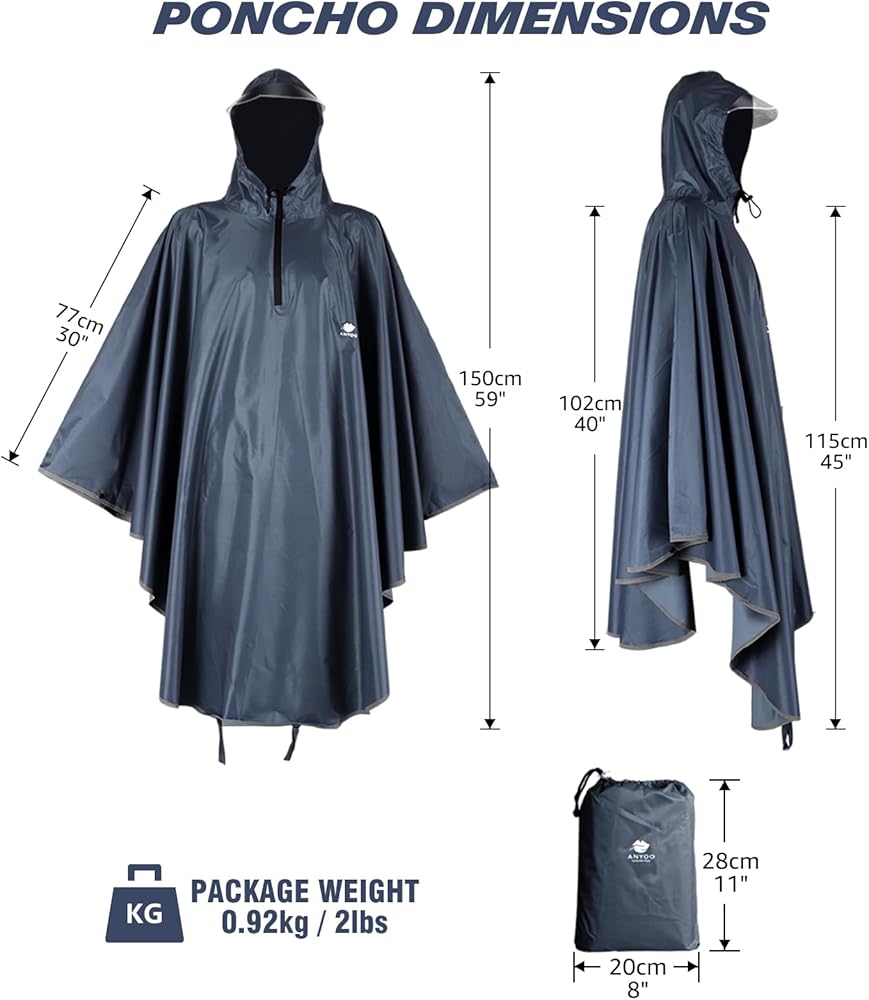 الحجم وقابلية التعبئة: إنها كبيرة بما يكفي لتغطية جسمك. يمكن طي معاطف المطر إلى حجم صغير لسهولة التخزين والنقل. تأتي مع حقيبة حمل أو حقيبة لتسهيل اصطحابها معك في المغامرات الخارجية.