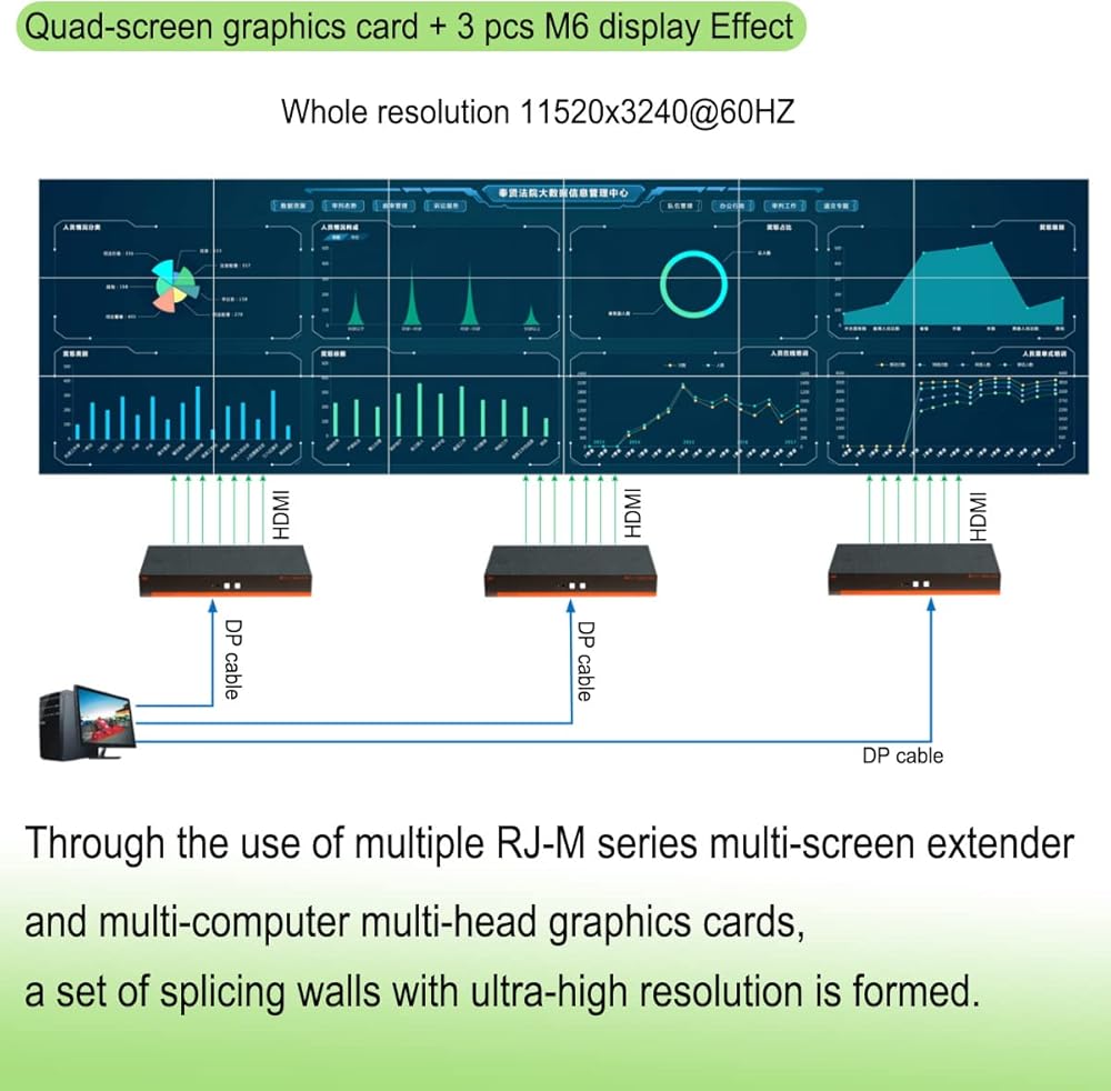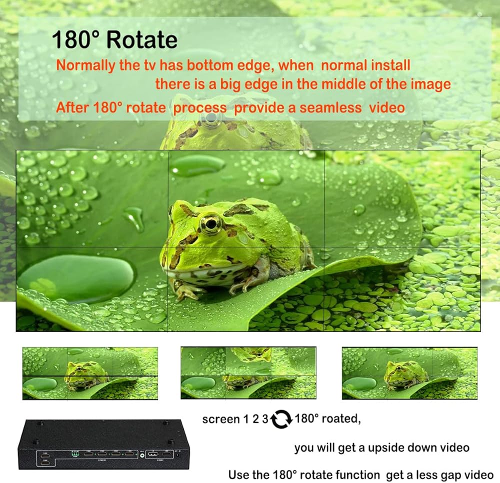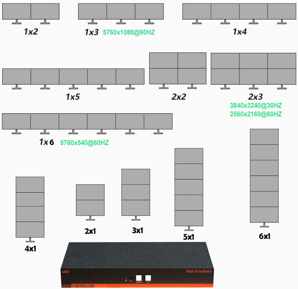 【أوضاع الدعم】يدعم وصلة الفيديو M6 هذه 1x2 1x3... 1x6 2x3 3x2 2x 3x1 ...6x1 وضع الربط، يمكنك أيضًا ضبط وضع Portriat مع 1x2 1x3... 1x6، ولكن تحتاج إلى تدوير الإدخال الأصلي بمقدار 90 درجة ، جدار الفيديو هذا لا يدعم دوران 90 درجة
