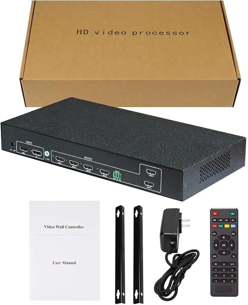 وحدة تحكم جدار الفيديو 4K 60HZ UHD، 2x3 3x2 أوضاع لصق معالج جدار التلفزيون لـ 6 شاشات توصيل تلفزيونية تدعم 5760x2160@30 هرتز المدخلات ودعم الإخراج من نقطة إلى نقطة 1x5 1x6 3x2 2x3 2x2 إلخ 22 وضعًا