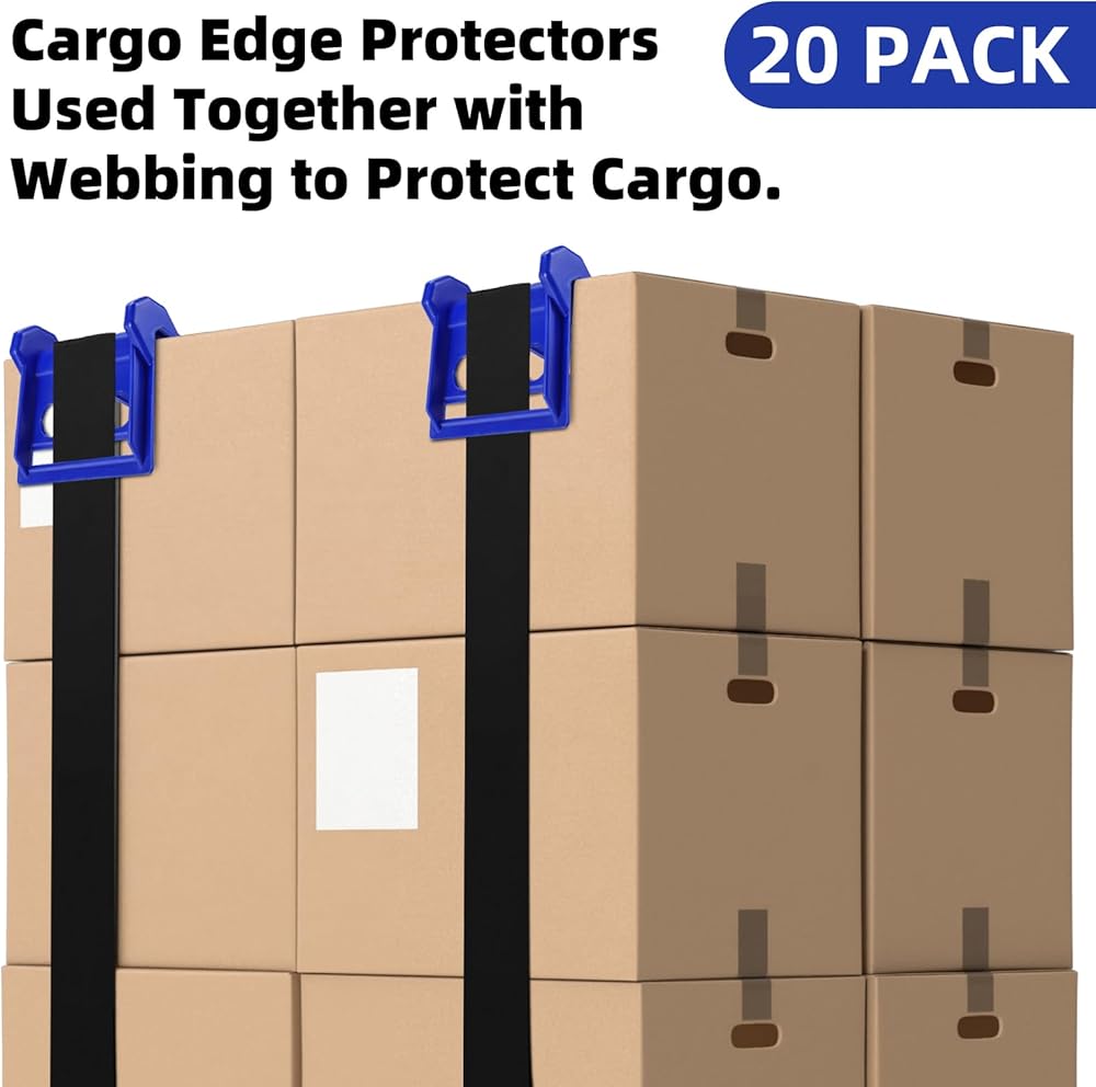 【خامة عالية الجودة】واقي الزاوية المربوط مصنوع من البولي إيثيلين، وهو مقاوم قوي للتآكل ومتانة. لا ينحني عن الشكل بسهولة تحت الضغط أو ينكسر بسهولة في درجات الحرارة الباردة، مما يوفر حماية كبيرة لحواف حمولتك.