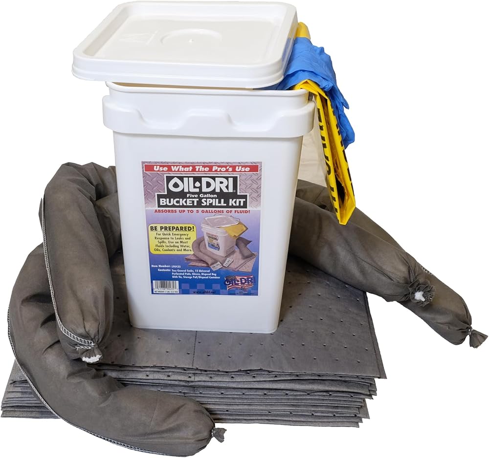 توفر مجموعة الانسكابات العالمية جوربين ماصين، و15 وسادة ماصة، وحقيبة التخلص من البولي إثيلين المنخفض الكثافة، وسطل للاستخدام في احتواء وتنظيف والتخلص من السوائل غير الحمضية القائمة على الماء والنفط على الأرض؛ أقصى قدرة على الامتصاص 5 جالون