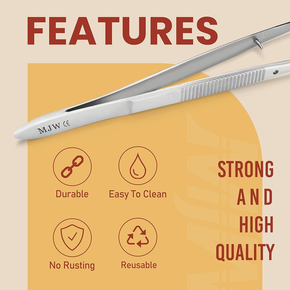 • صناعة يدوية عالية الجودة: تم تصميم ملقط إطعام الزواحف المصنوع من الفولاذ المقاوم للصدأ مع الاهتمام الدقيق بالتفاصيل، حيث تعرض الجودة المتميزة، مما يضمن الأداء الموثوق والمتانة في كل استخدام مما يجعلها مناسبة كملاقط آمنة للغسل في غسالة الأطباق.
