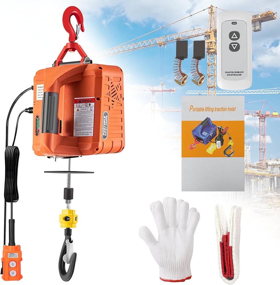 3 في 1 رافعة كهربائية ونش كهربائي محمول 1100 رطل، رافعة ونش طاقة 1500 وات 110 فولت، ارتفاع رفع 25 قدمًا، مع سلك وجهاز تحكم عن بعد لاسلكي، حماية من الحمل الزائد لرفع القطر