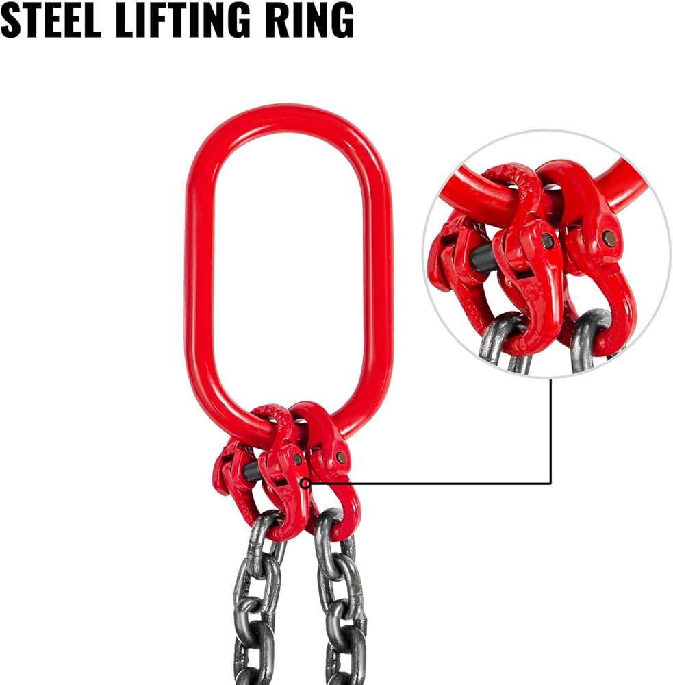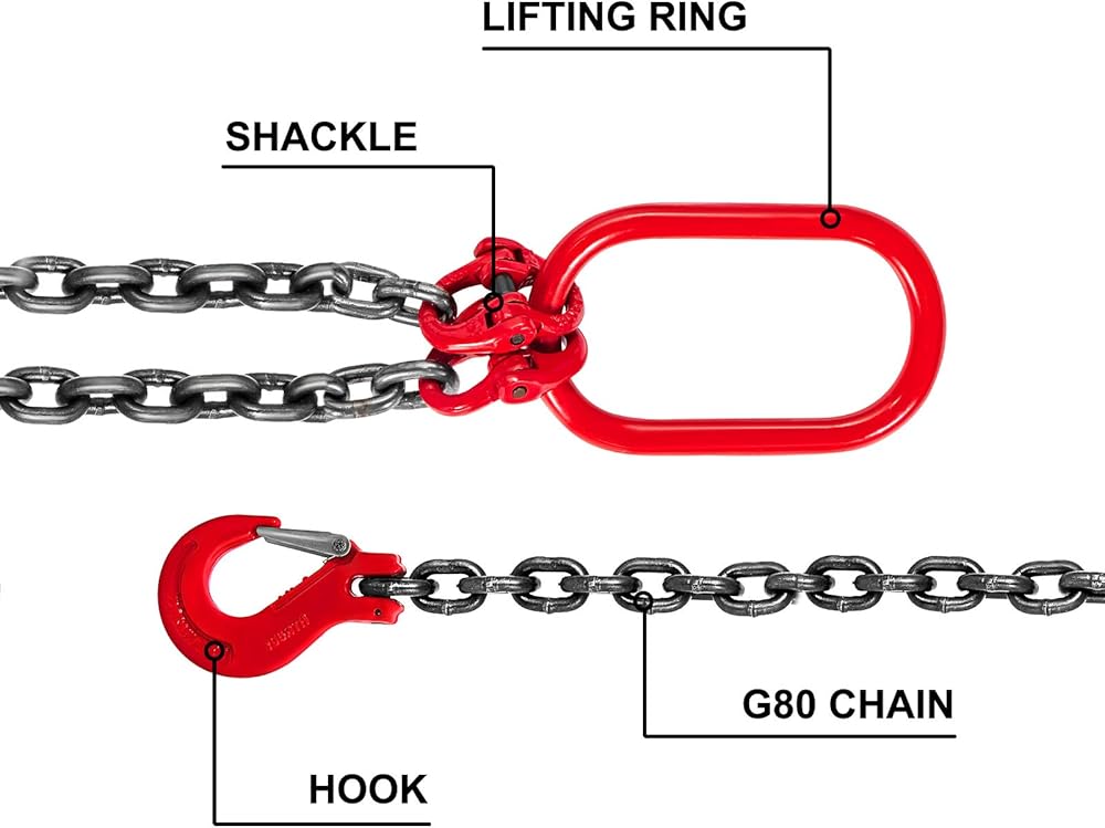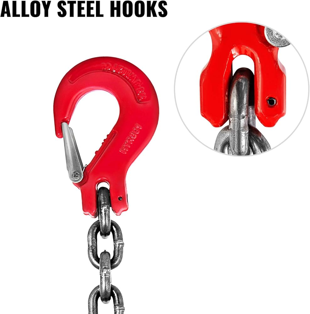سلسلة وخطافات شديدة التحمل: سلسلة حبال السلسلة هذه مصنوعة من الفولاذ G80 Mn. وصلة الرفع والخطاف مصنوعة من سبائك الصلب مع طلاء المسحوق. إنه مقاوم للتآكل ودرجات الحرارة المرتفعة.