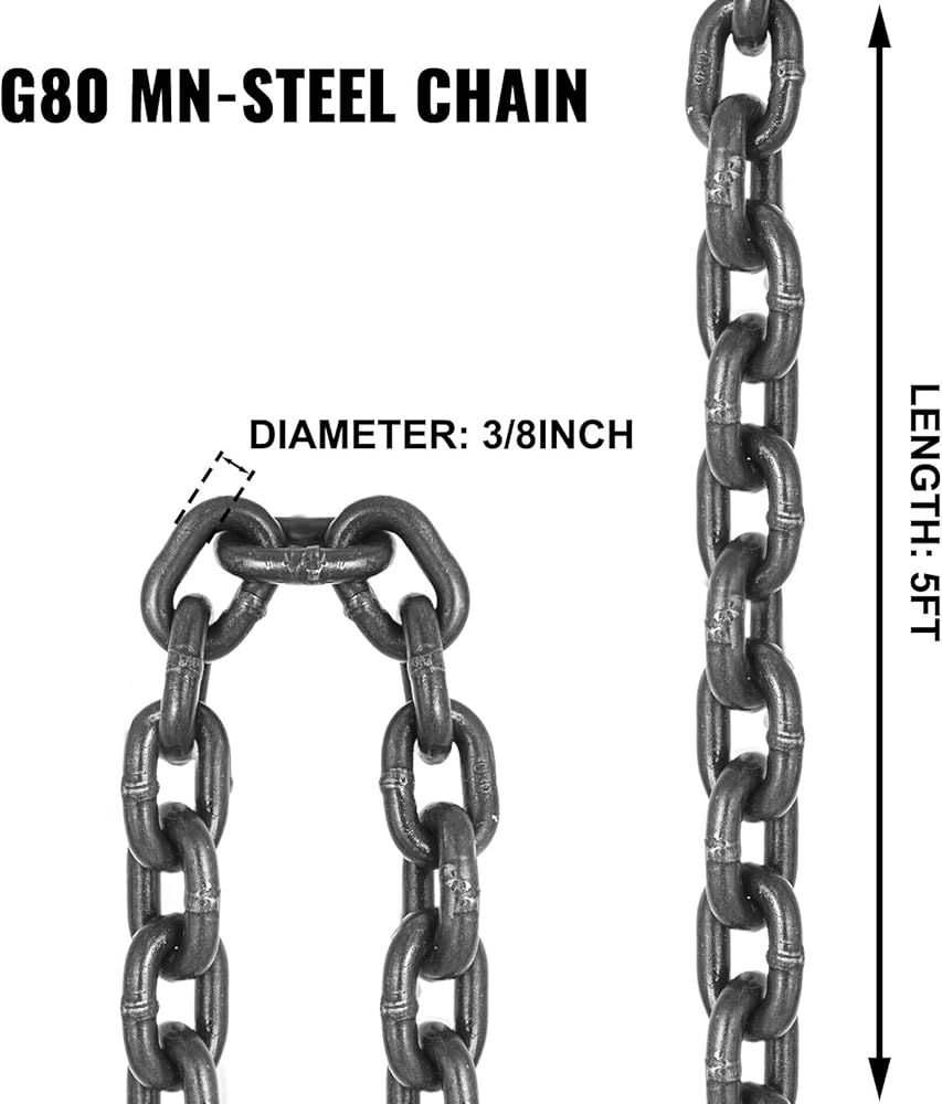 هيكل فولاذي متين: مصنوع من سلسلة فولاذية G80 Mn وخطاف من سبائك الصلب، تتميز حبال السلسلة الخاصة بنا بتقنية لحام أوتوماتيكية بالكامل، مصممة للاستخدام على المدى الطويل.