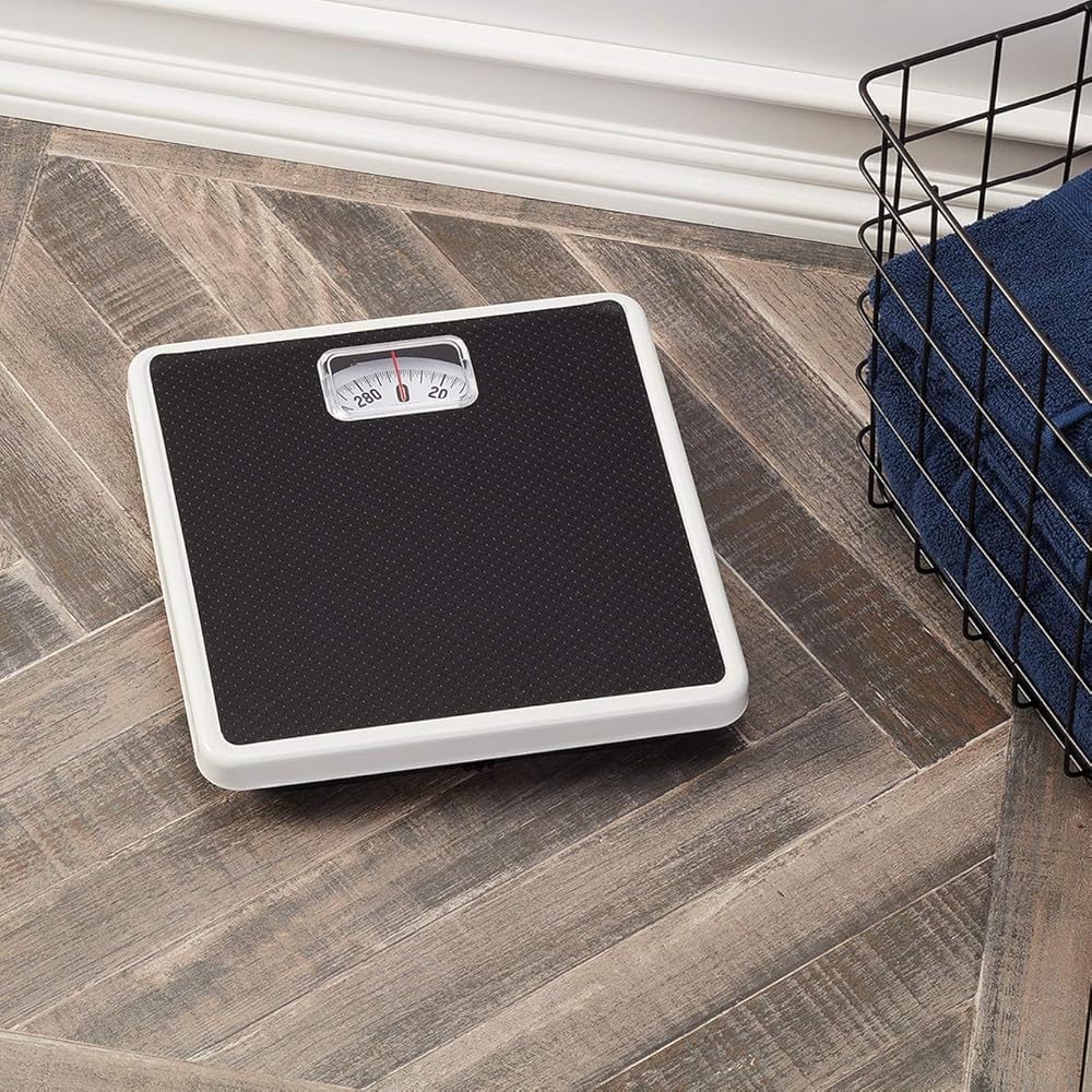مع هيكـل فولاذي عالي الجودة، هذا الميزان الميكانيكي لا يحتاج بطاريات. ببساطة قف على الميزان وانتظر حتى يتوقف المؤشـر لقراءة الوزن.