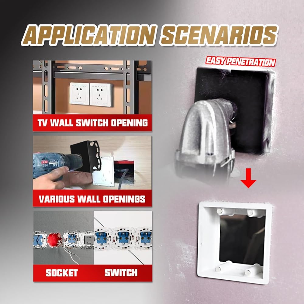 【قطع سريع ودقيق】: تم تصميم أداة القطع المتأرجحة ذات الفتحات المربعة خصيصًا لقطع التركيبات المربعة. يمكنها قطع الثقوب بأحجام (2-1/4 بوصة) * (3-3/4 بوصة) أو (4-1/16 بوصة) * (4-1/16 بوصة) في الحوائط الجافة، مما يسمح لك بتثبيت المنافذ بسرعة أو الصناديق الكهربائية ذات الجهد المنخفض أو غيرها من المهام المتعلقة بالثقب بسرعة ودقة دون الإضرار بالديكورات والجدران.