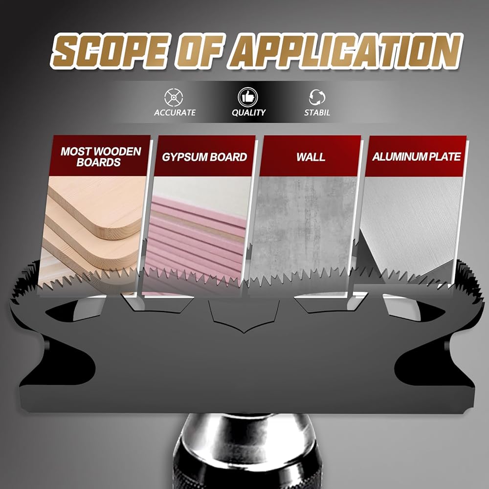 【أداة فعالة】: تتميز قاطعة الفتحات الخاصة بنا بتصميم سن المنشار المتموج، مما يحسن عملية القطع للحصول على تجربة قطع أكثر سلاسة واستقرارًا. كما أنه يحميك من الشرر وحطام الحوائط الجافة أثناء العمل. بالإضافة إلى ذلك، فهي تسمح بالتقطيع السريع والسهل للصناديق المفردة والمزدوجة، مما يضمن سير عمل سريع ومباشر، وبالتالي تعزيز كفاءة العمل.