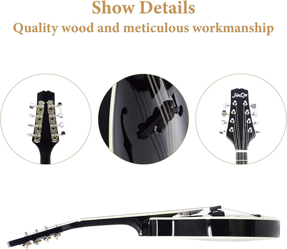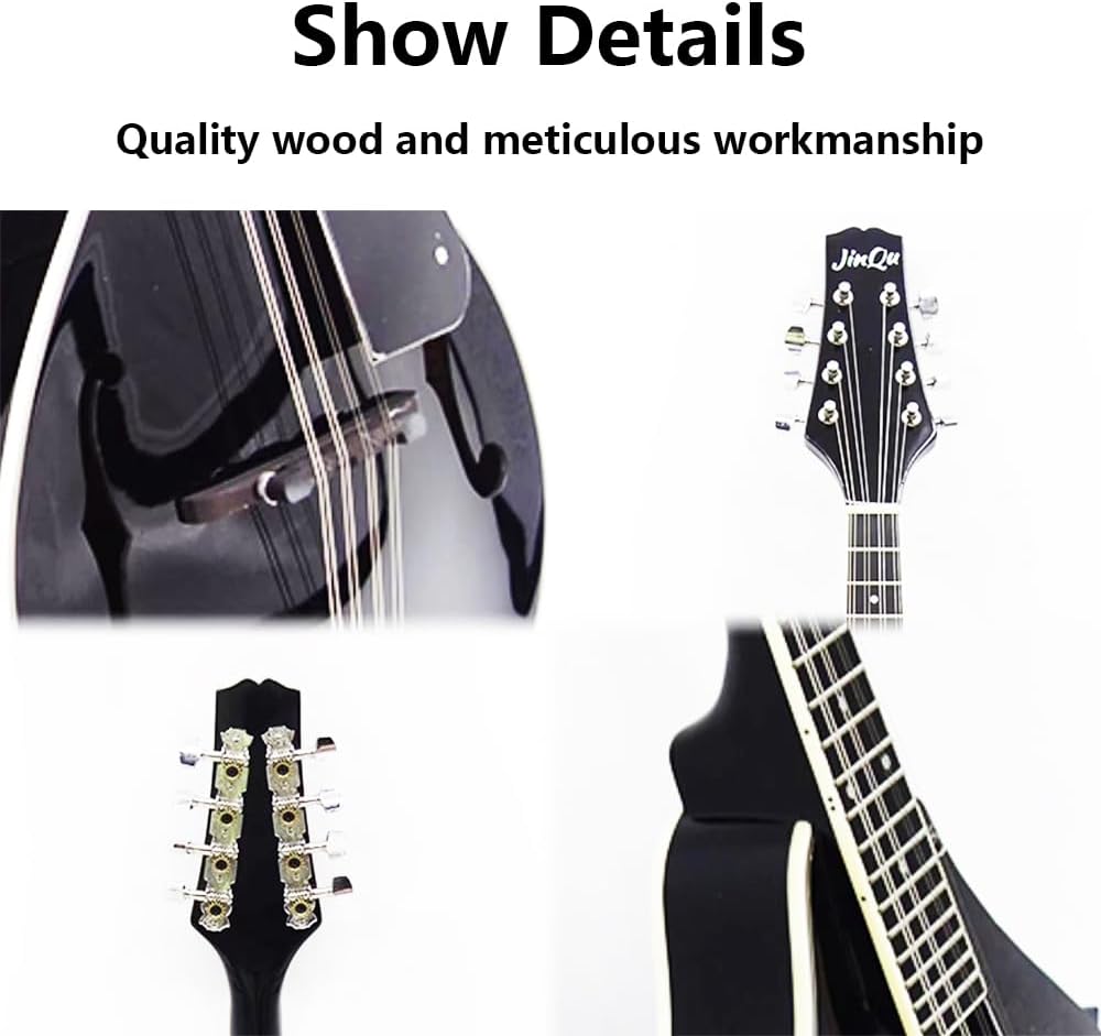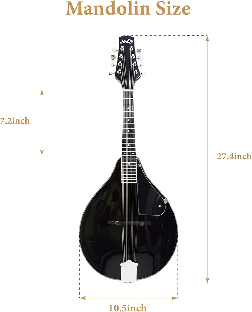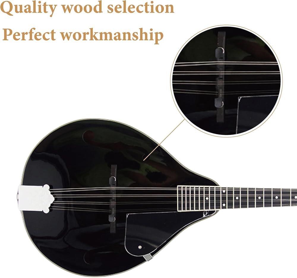 نموذج آلة المندولين للمبتدئين والأطفال والكبار. مجموعة مندولين صوتي مكونة من 8 أوتار من شجرة التنوب والسابيلي؛ مجموعة المبتدئين: موالف، أوتار، أشرطة، اختيار، قطعة قماش للمسح، أسود لامع