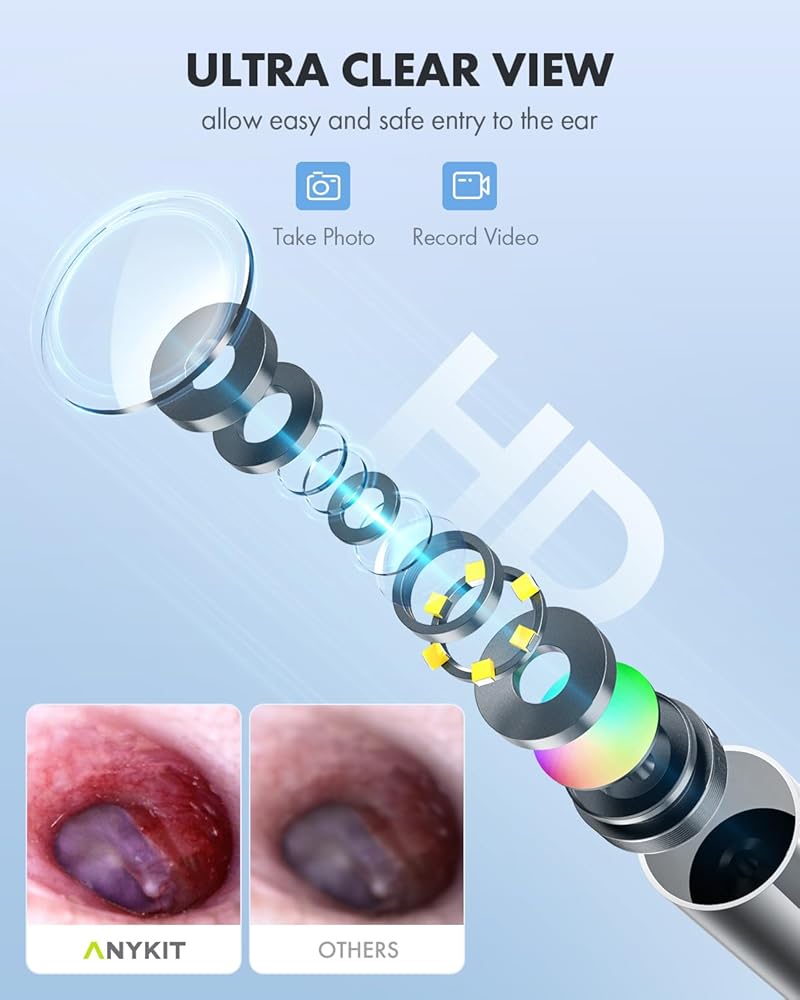 لا تشعر أبدًا أن أذنيك نظيفة بما فيه الكفاية؟ هل تريد أن ترى ما يحدث داخل أذنيك؟ تعد كاميرا إزالة شمع الأذن من Anykit حلاً سريعًا وبأسعار معقولة بالنسبة لك. تحقق وتتبع صحة أذنك بكل سهولة.