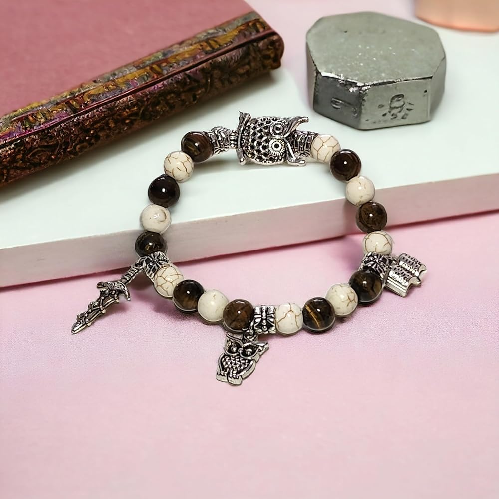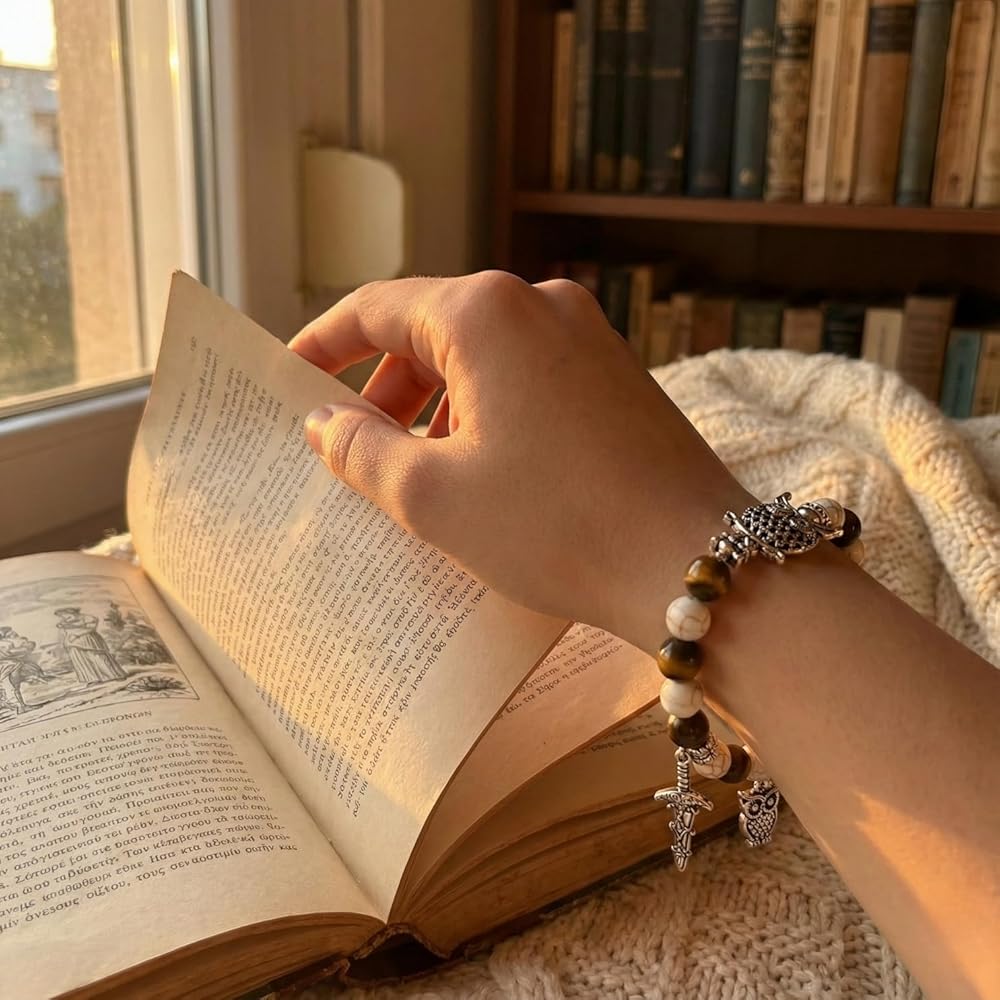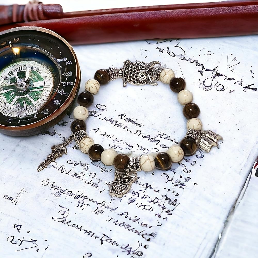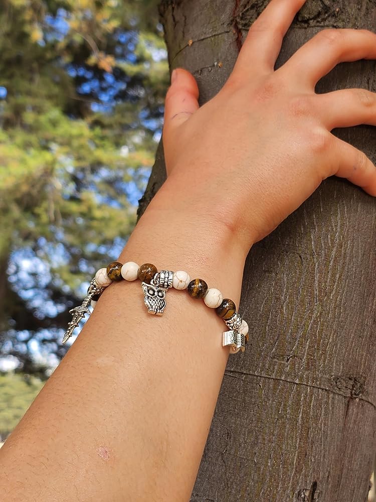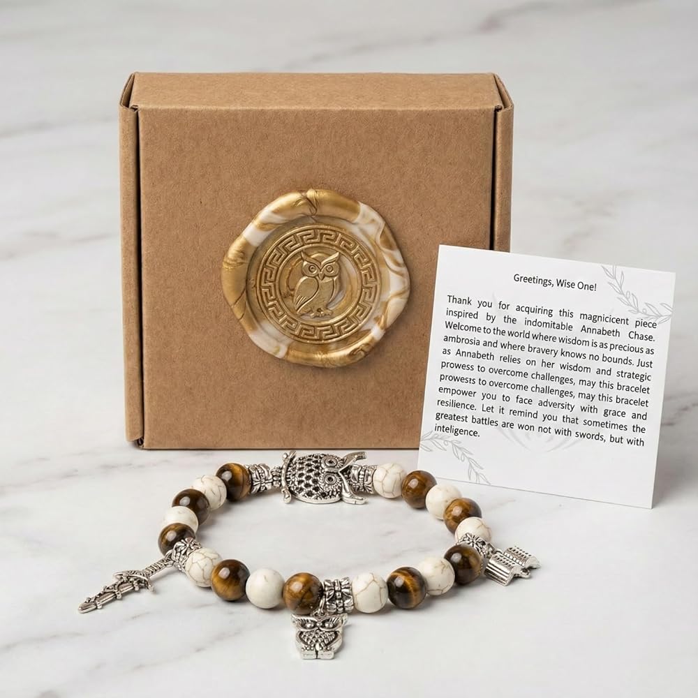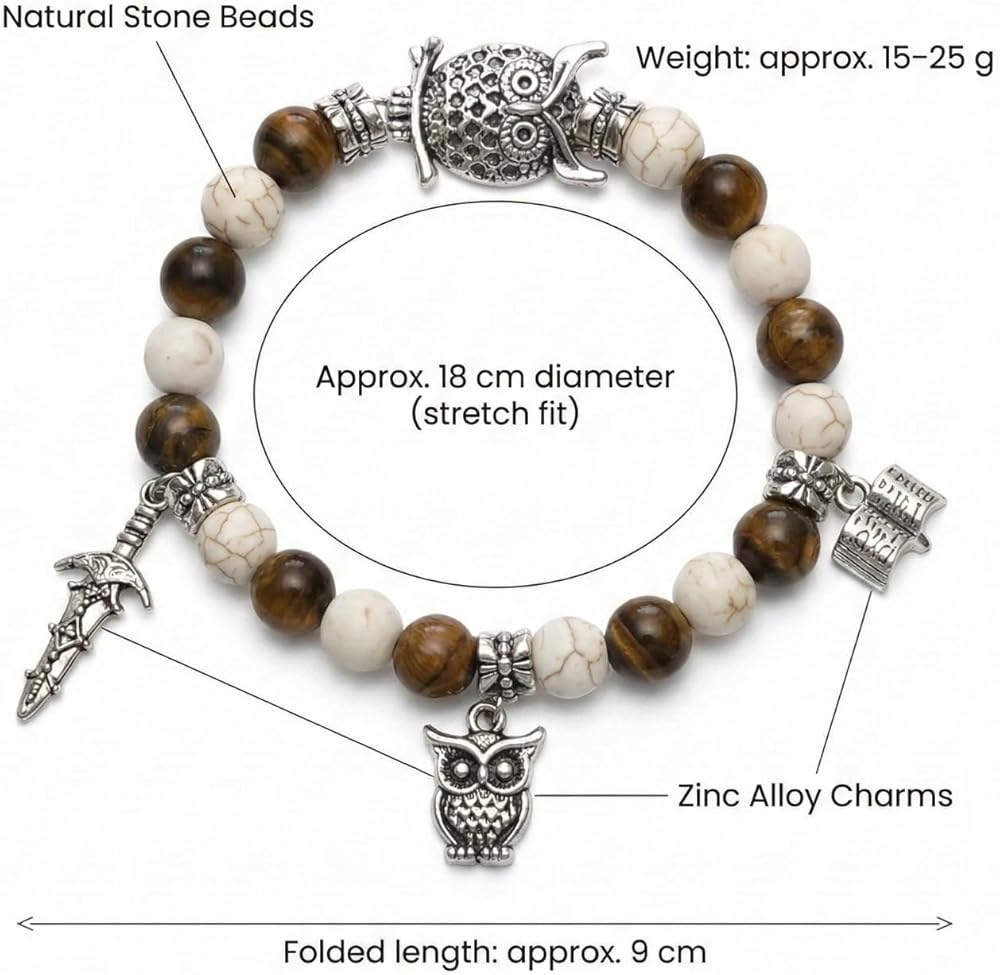 مستوحى بشكل فريد من بيرسي جاكسون: ارتدي فخرك مع هذا السوار المصنوع من الحجر الطبيعي الذي يتميز بسحر موضوعي، وهو مثالي لعرض حبك للملحمة.