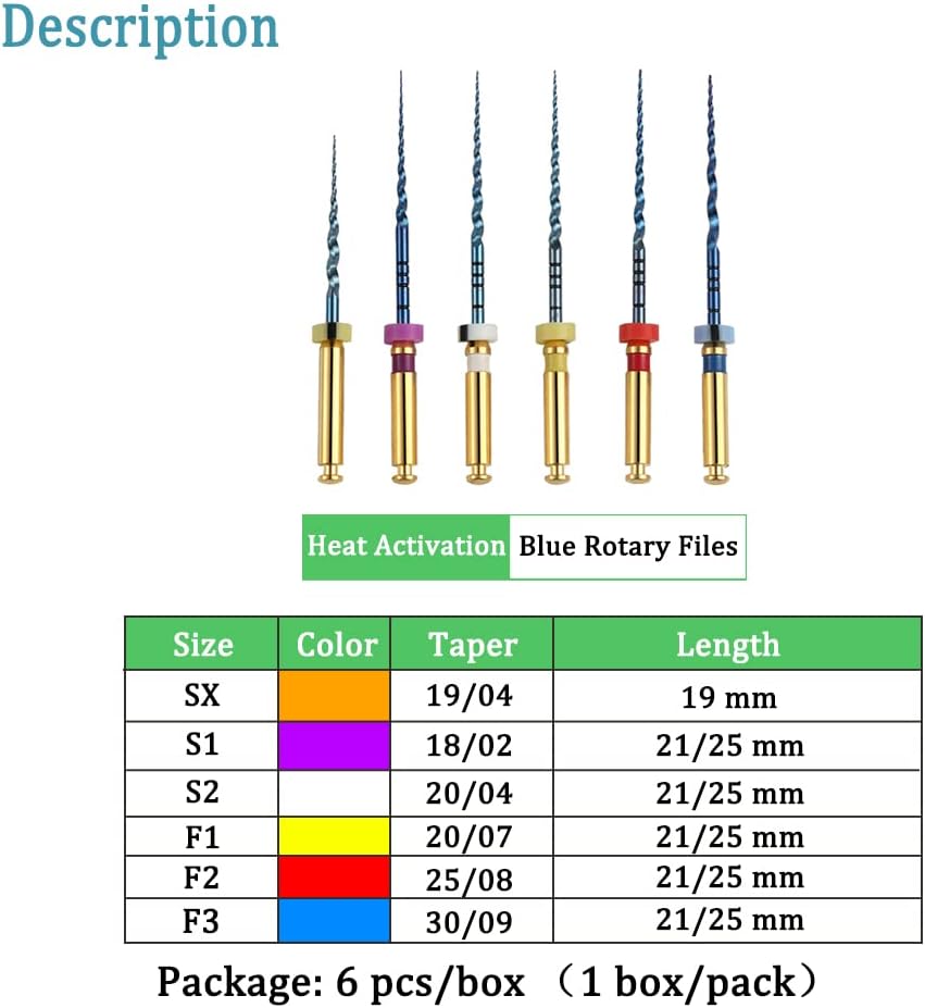 6 قطع من الملفات الدوارة للتنشيط الحراري من نيتي سوبر بلو مقاس مختلط لأدوات التحضير