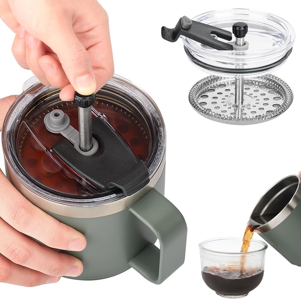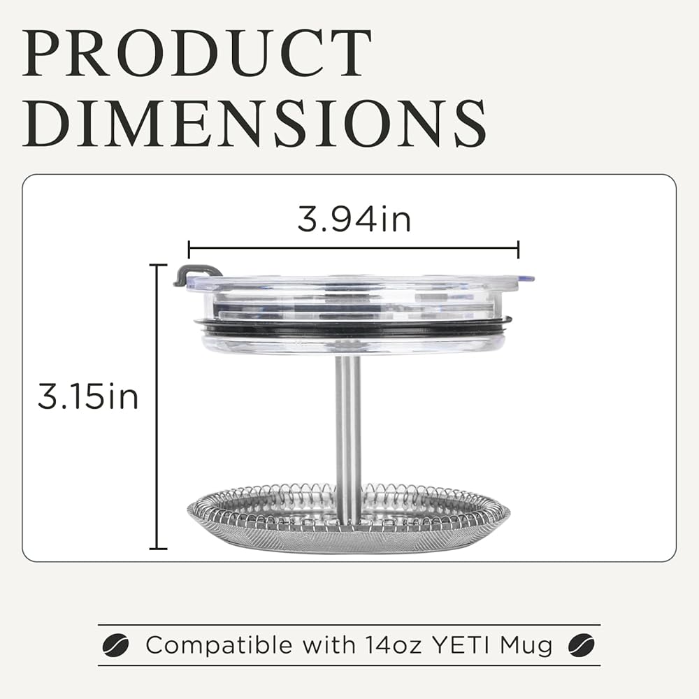 القدرة على التكيف مع الصحافة الفرنسية: قم بتحويل YETI Rambler الخاص بك إلى ماكينة ضغط فرنسية محمولة باستخدام أحدث ابتكاراتنا في مجال القهوة. استمتع بمذاق القهوة الطازجة أينما تسافر بضغطة زر بسيطة.