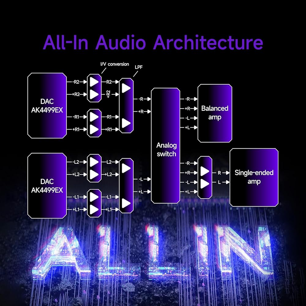 • تم تجهيز مشغل الصوت HiBy R6 PRO 2 بشرائح AK4191+Dual AK4499EX DAC ومذبذب صوت فيمتوثانية، مما يدعم فتح تنسيقات الصوت مثل DSD1024، وPCM1536K، وMQA 16X. ومن خلال اقترانه ببنية الصوت ALLIN الفريدة، فإنه يمكّن محول الصوت الرقمي (DAC) من إطلاق العنان لإمكانات الأداء الكاملة، مما يوفر صوتًا واضحًا ونقيًا بدقة دقيقة ونطاق ديناميكي واسع.