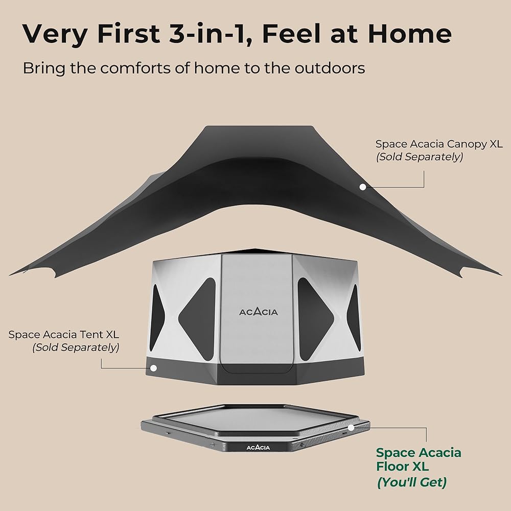 نظام تخييم جديد 3 في 1: يتكون Space Acacia من خيمة تخييم واسعة وحديثة وأرضية هوائية خاصة هي الأولى من نوعها ومظلة مبتكرة لضبط درجة الحرارة. تعمل جميع المكونات الثلاثة المصممة بعناية في تناغم لتمكنك من عيش نمط حياة داخلي وخارجي.