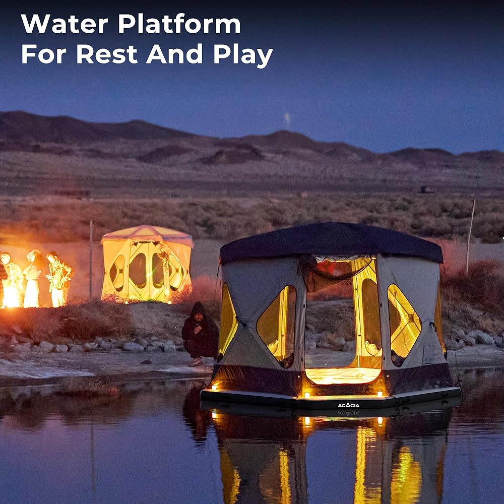 CAMP BEYOND LAND: تتحول الأرضية الهوائية القابلة للنفخ إلى حقيقة. قم بالتخييم على المياه الهادئة وانغمس في هدوء جمال الطبيعة.