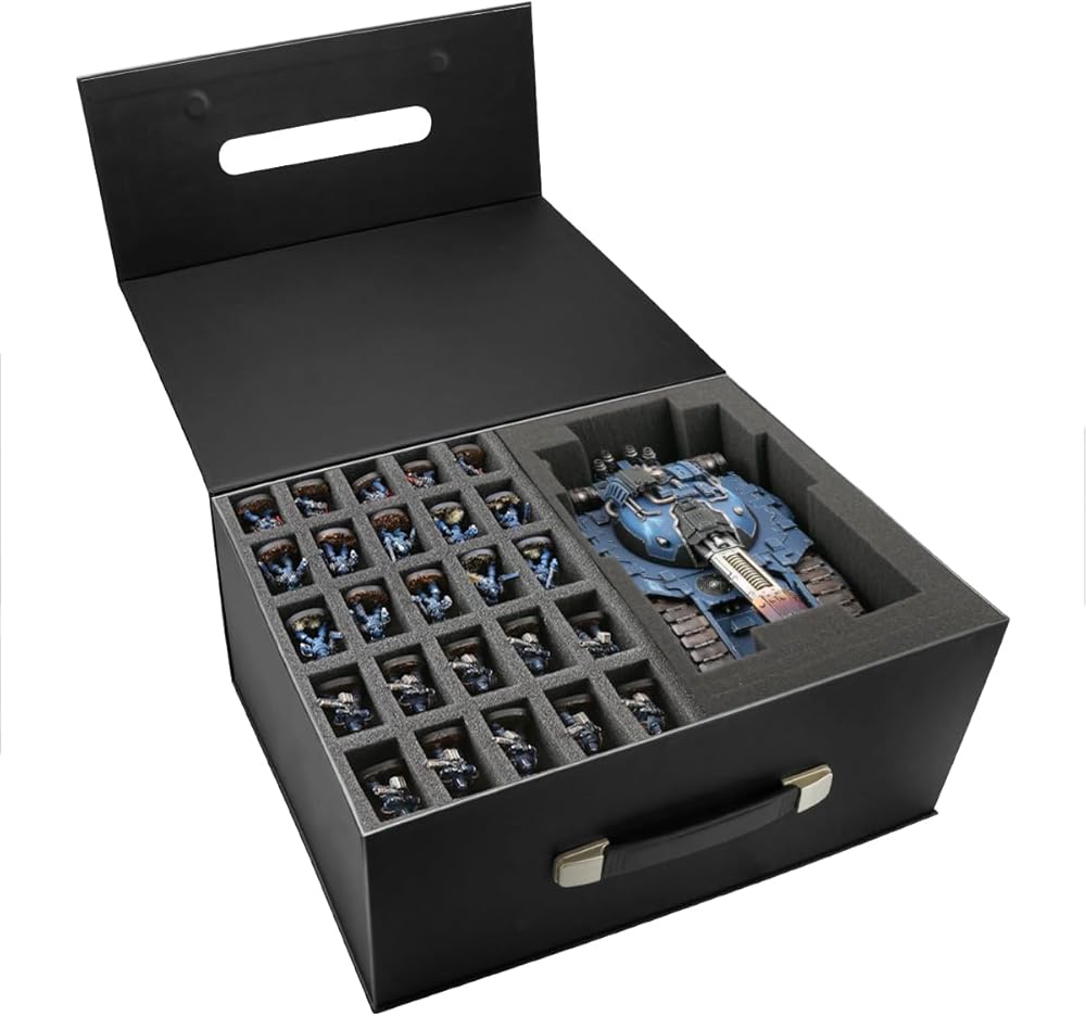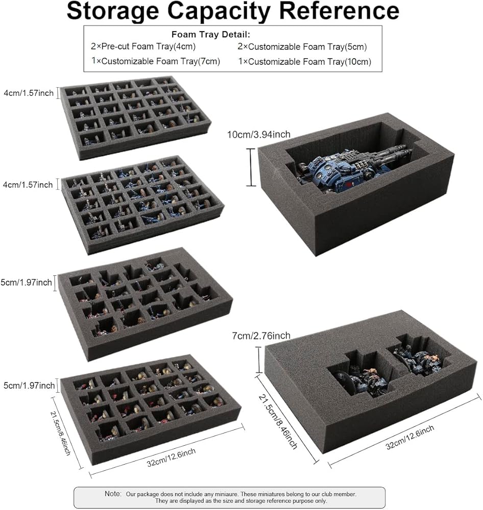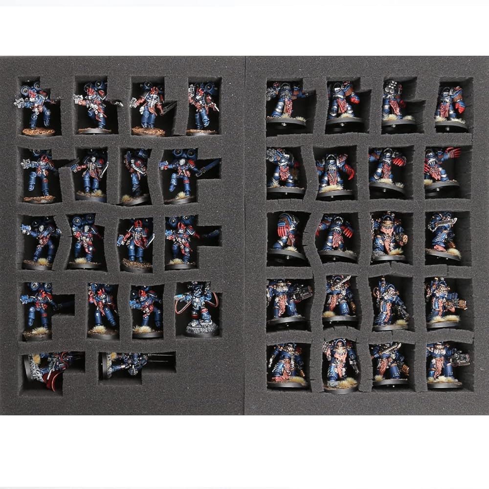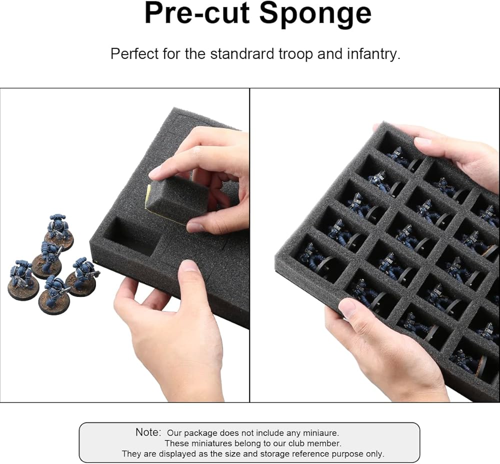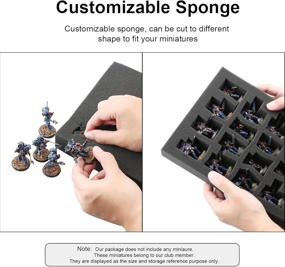 • 【رغوة مقطوعة مسبقًا مقاس 4 سم】تشتمل حقيبة التخزين المصغرة هذه على قطعتين من صواني الفوم المقطوعة مسبقًا. يبلغ ارتفاعها 1.57 بوصة (4 سم)، وكل إسفنجة تحتوي على 25 فتحة. سيسمح لك بتخزين 100 مشاة قياسي (منمنمات قاعدة 25 ~ 32 مم).