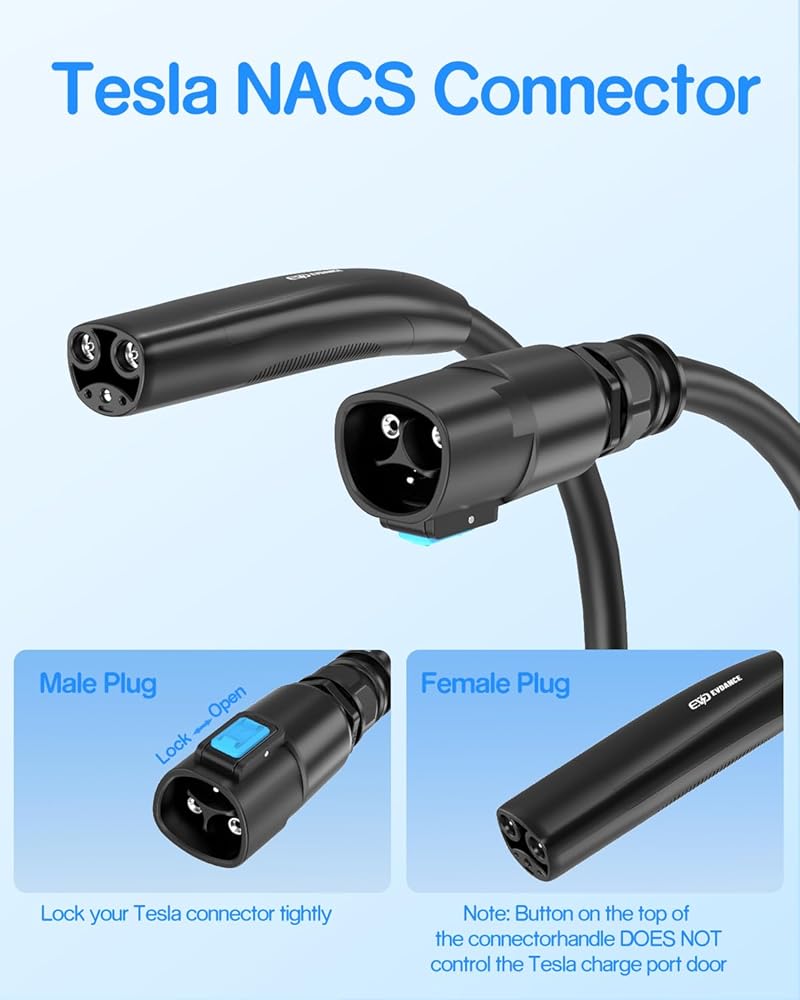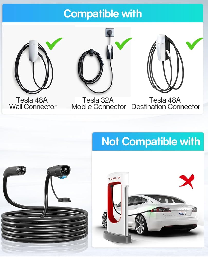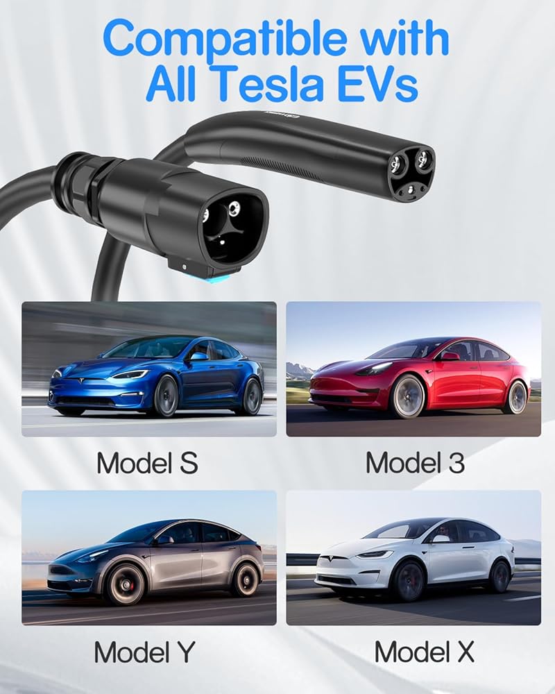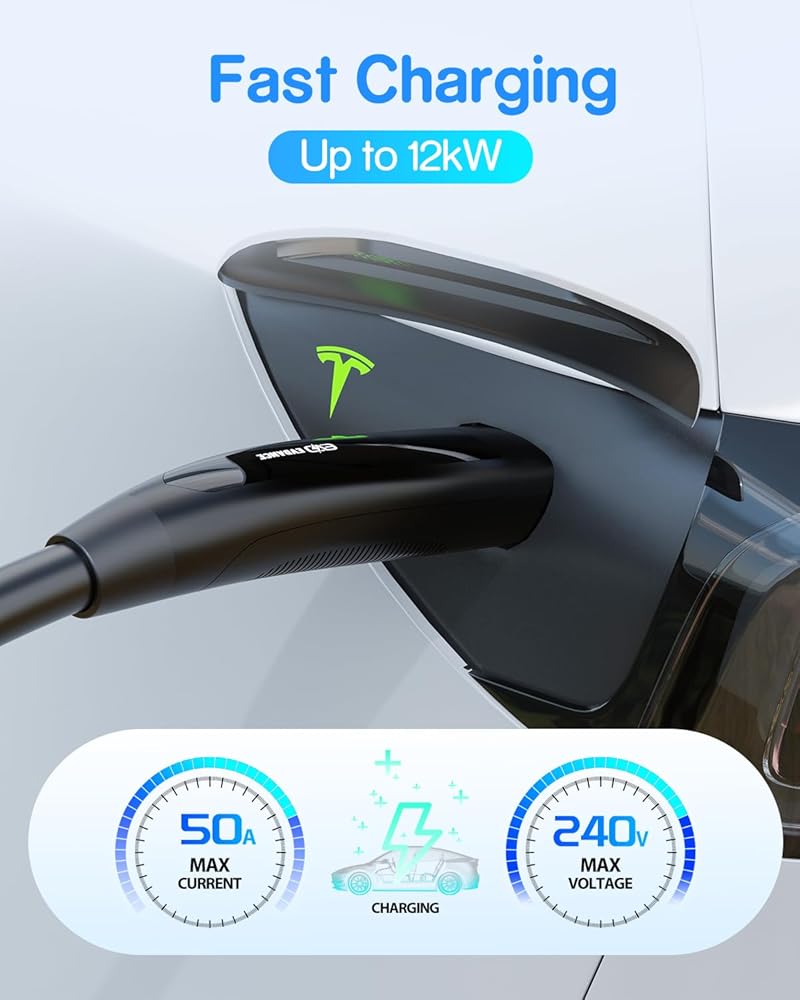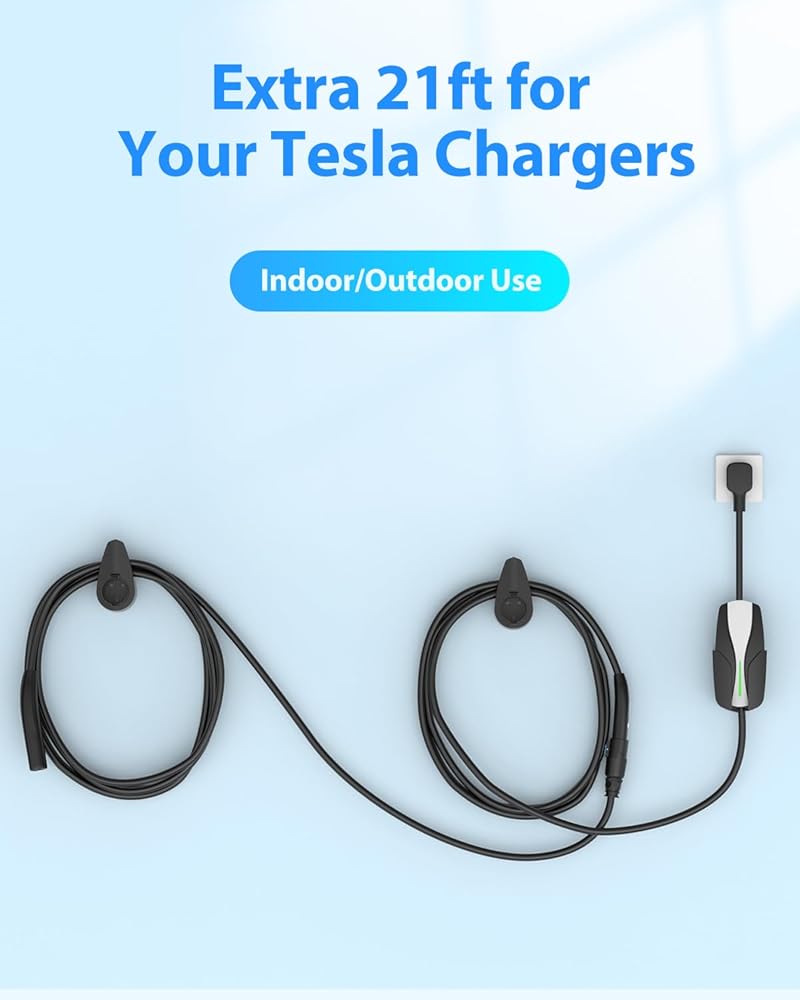 【توافق عالي الطاقة】كابل تمديد تيسلا 50 أمبير بحد أقصى. تم تصميم سعة الشحن 50 أمبير و240 فولت و12 كيلو وات، للعمل بسلاسة مع شواحن تيسلا 16 أمبير/32 أمبير، بما في ذلك شاحن تيسلا المحمول الجيل 1 والجيل 2، وموصل حائط تيسلا الجيل 1 والجيل 2 والجيل 3، وموصل وجهة تيسلا. وهذا يضمن أنه يمكنك شحن طراز Tesla Model Y أو Model 3 أو Model X أو Model S بسهولة.