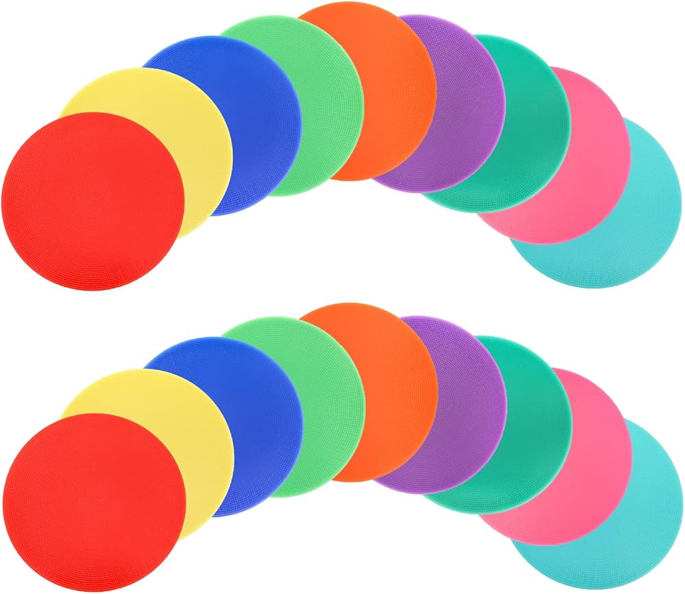 مجموعة أقلام تحديد البقع مكونة من 18 قطعة، مصنوعة من مطاط ناعم يدوم طويلاً، وتوفر المخاريط المسطحة متانة استثنائية، ويضمن التصميم المقاوم للتمزق أن تتحمل البقع المطاطية مجموعة متنوعة من الألعاب والتدريبات في الملعب أو في فصول التربية البدنية. قابلة للغسل وقابلة لإعادة الاستخدام.