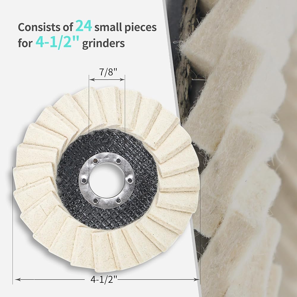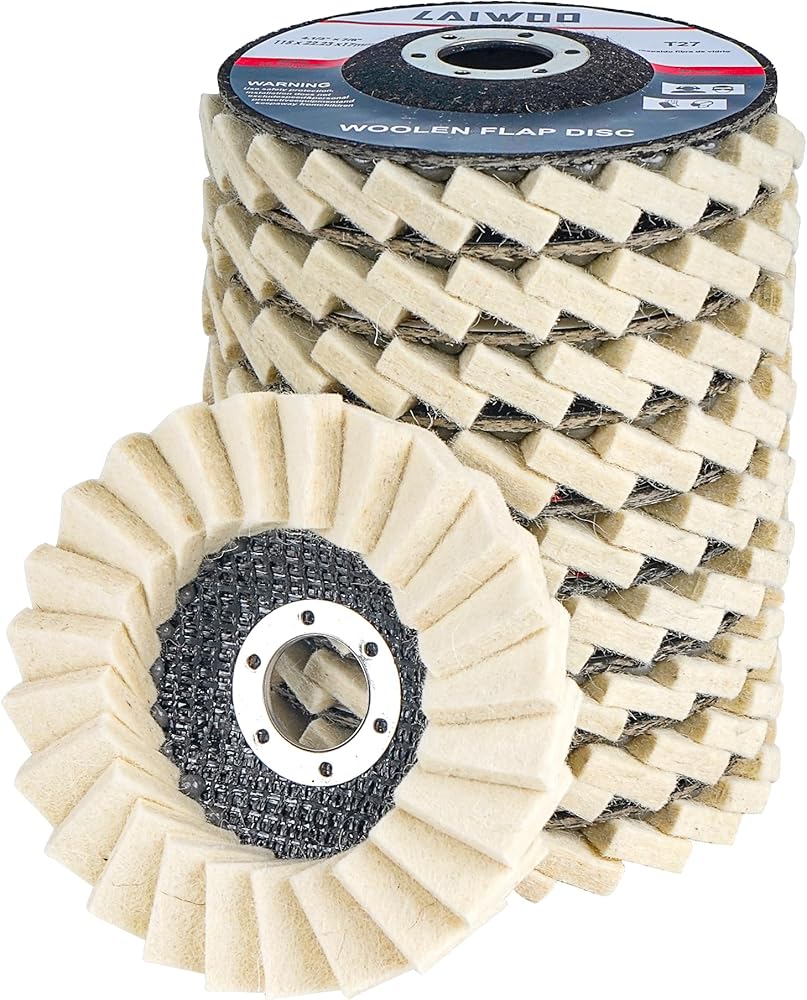 قرص عجلة تلميع الصوف LAIWOO مقاس 4-1/2 بوصة × 7/8 بوصة، قرص عجلة تلميع اللباد الصوفي 10 عبوات، مخزن مؤقت لطاحونة الزوايا (6 مم، أكثر سمكًا)