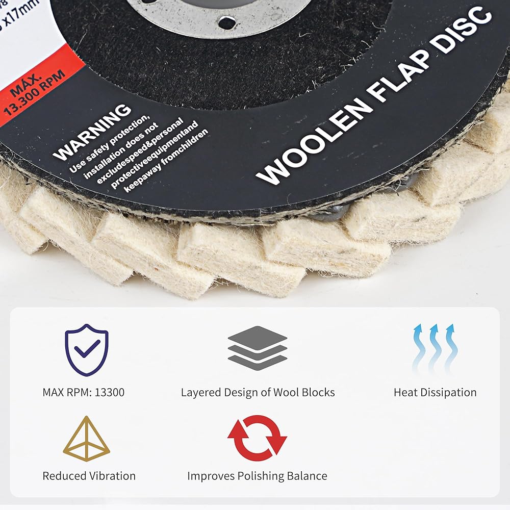• 【قوي ومتين】يوفر التصميم ذو الطبقات المكونة من 24 قطعة صوف صغيرة مقاس 6 مم أداءً أفضل من أقراص الصوف الصلب، مما يجعلها خيارًا فعالاً من حيث التكلفة لمشروعات التلميع. بالإضافة إلى ذلك، تتفوق مادة الصوف الفاخرة في تبديد الحرارة أثناء العمل، مما يضمن عمرًا أطول للقرص القلاب.