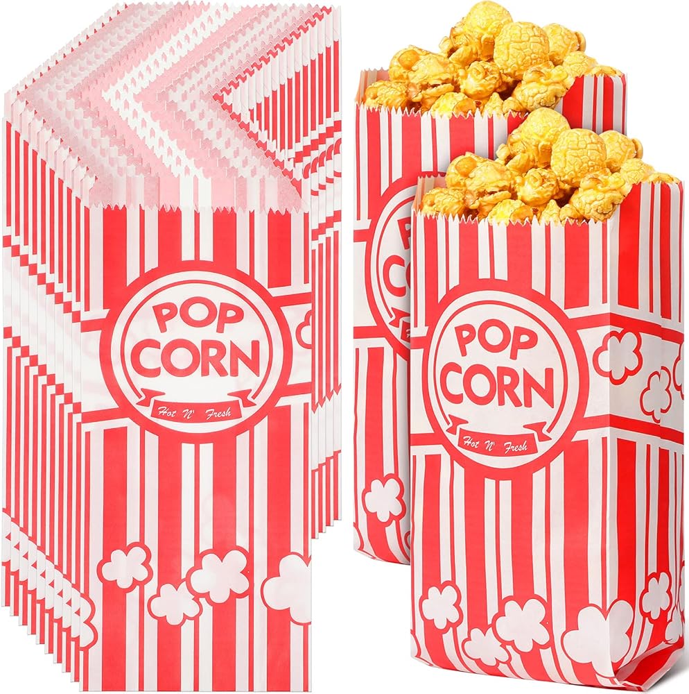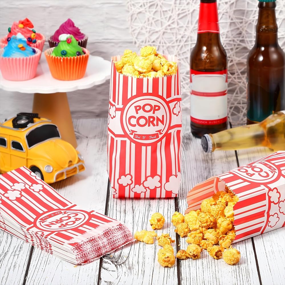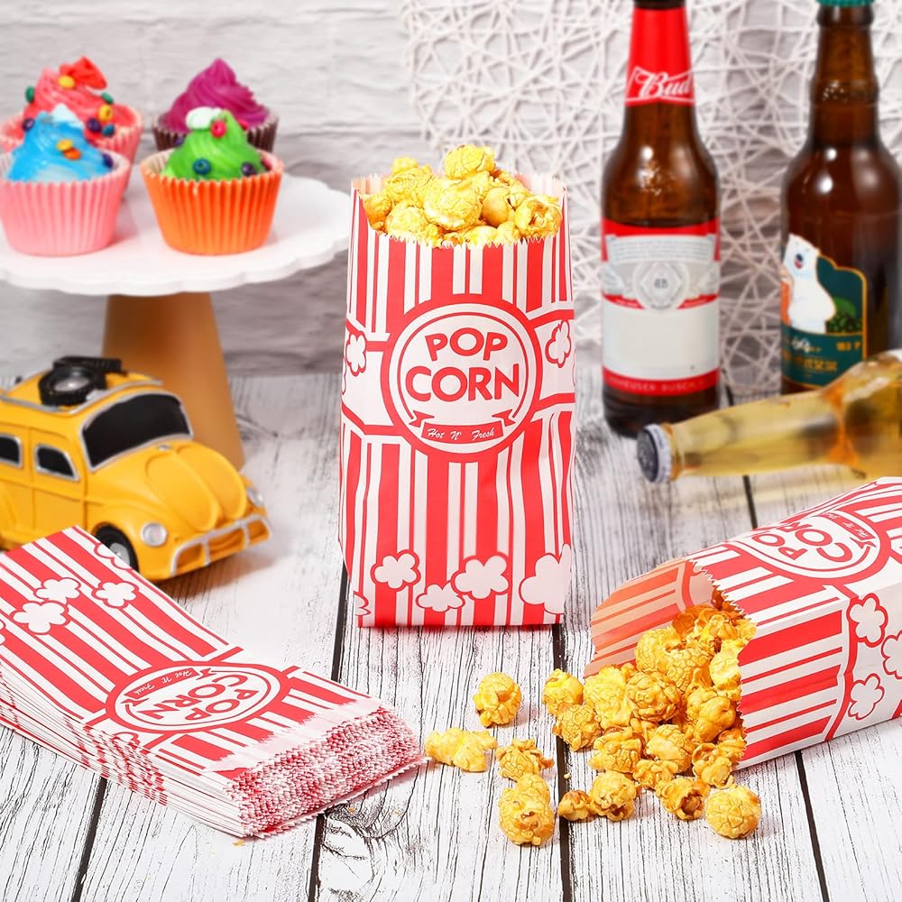 أكياس الفشار الورقية حقيبة 1 أونصة لحقيبة الفشار والفشار والذرة السائبة لآلة الفشار وحفلات الكرنفال والوجبات الفردية (500 قطعة)