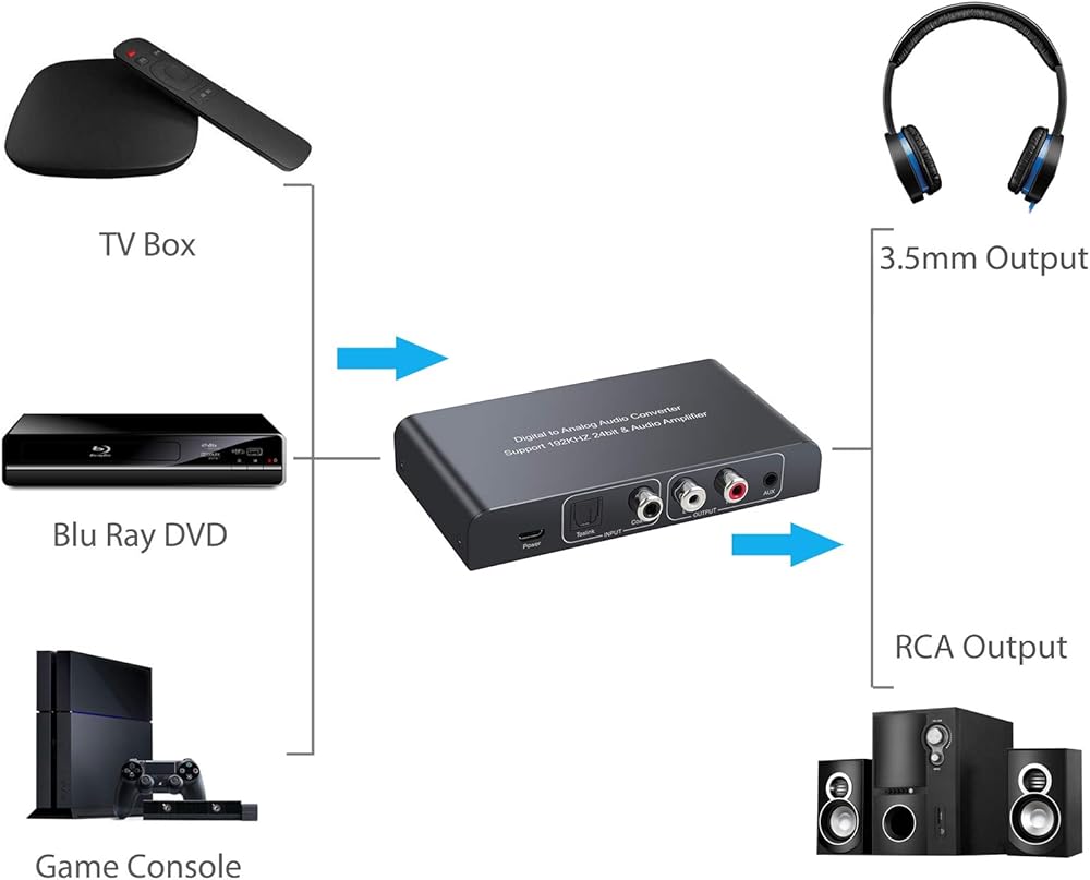 【محول DAC 192K】 يمكنه تحويل إشارة الصوت الرقمية المحورية أو Toslink إلى صوت L/R تناظري، والاتصال بالمعدات الخارجية مثل مكبر الصوت عبر كابل سماعة الرأس 3.5 مم.