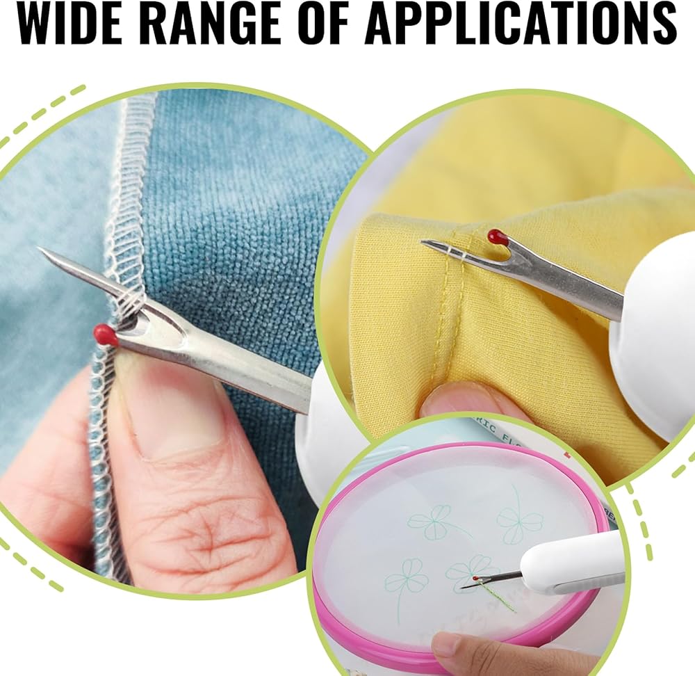سهلة الاستخدام: تتميز خيوط الإبرة هذه بأنها سهلة الاستخدام للغاية، ضع الخيوط من خلال فتحة الإبرة، ثم ضع الخيط على خيط الإبرة، ثم اسحب خيوط الإبرة من عين الإبرة، حل بسيط وسريع مشكلة خيط الإبرة.