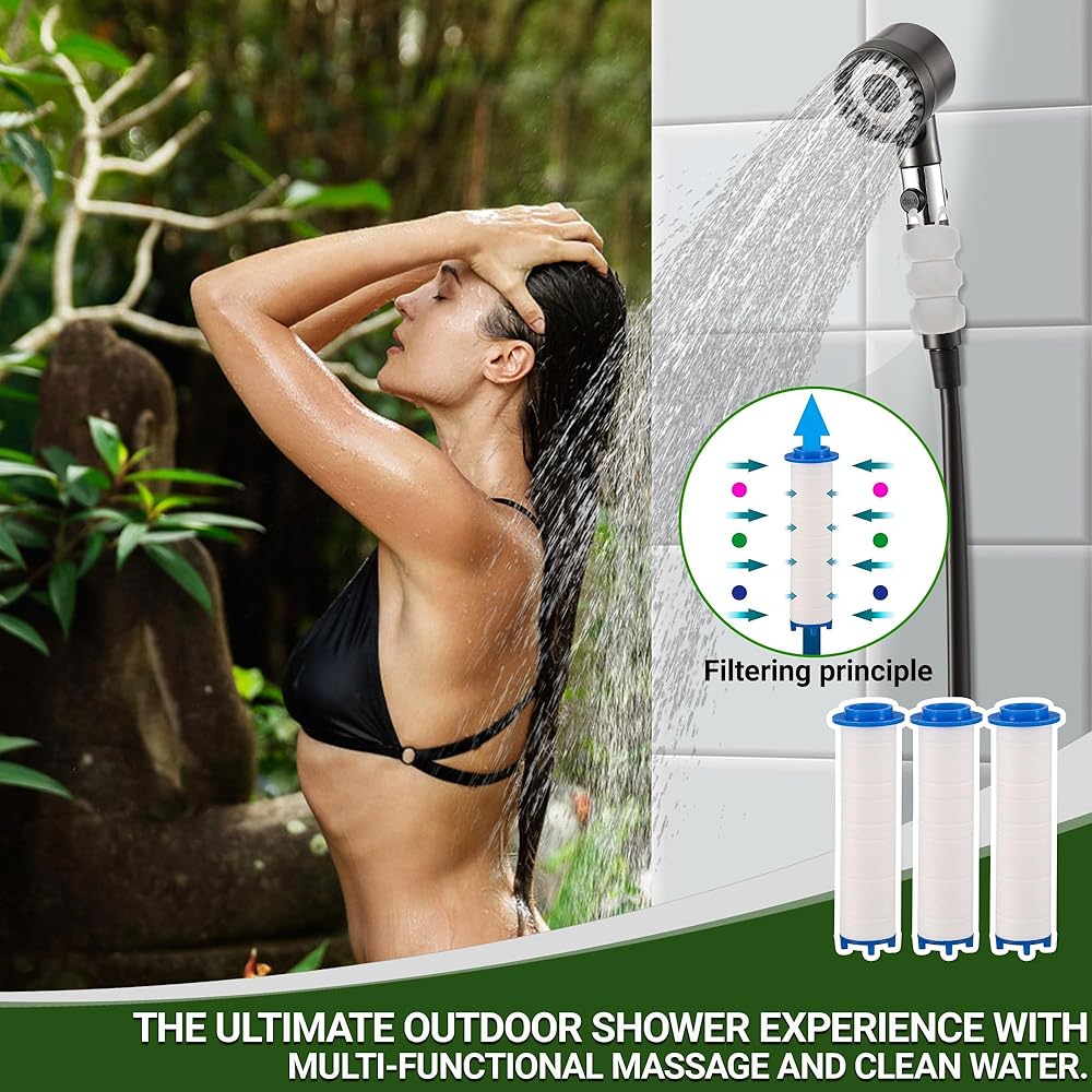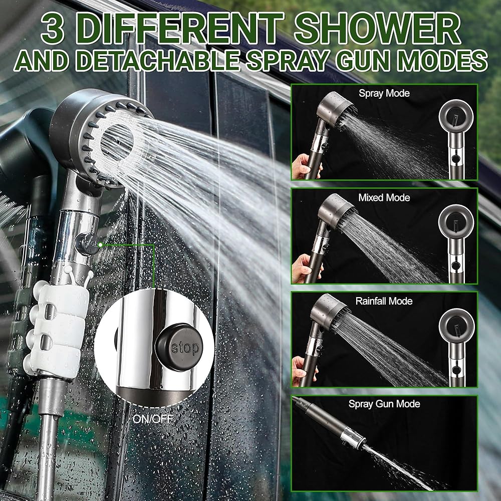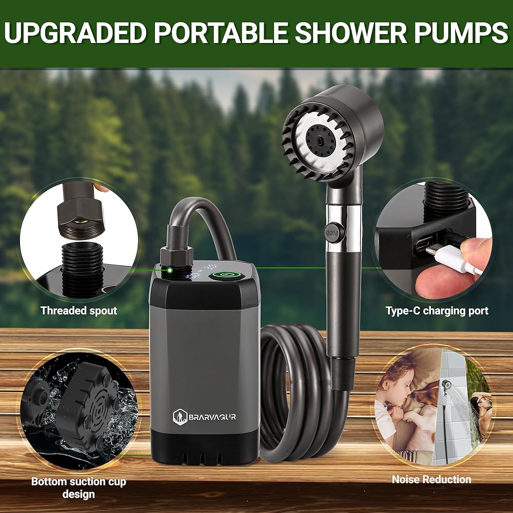 ترقية دش التخييم المحمول، مضخة دش كهربائية قابلة لإعادة الشحن بقدرة 6000 مللي أمبير في الساعة مع شاشة رقمية ذكية، أوضاع رش متعددة، رأس دش مفلتر مع جهاز محمول للمشي في الهواء الطلق، والسفر