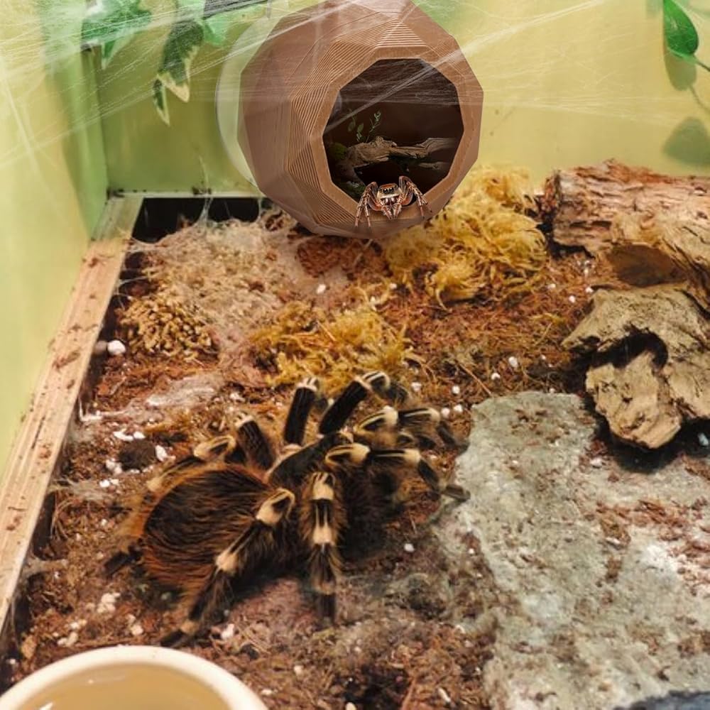 مخبأ العنكبوت القافز: يوفر مخبأً آمنًا لعنكبوتك الأليف، مخبأ العنكبوت القافز مصنوع من مواد عالية الجودة تحمي حيوانك الأليف من الأذى، مما يسمح له بالشعور بالأمان والأمان في مساحته الخاصة.