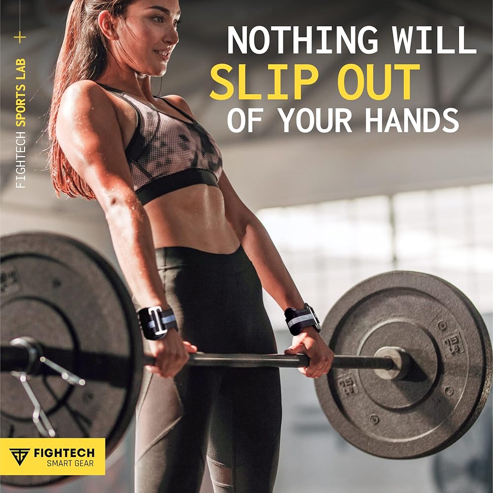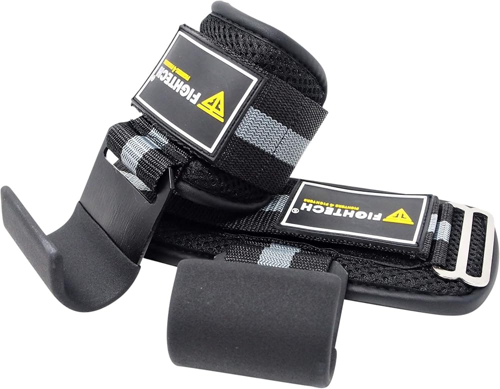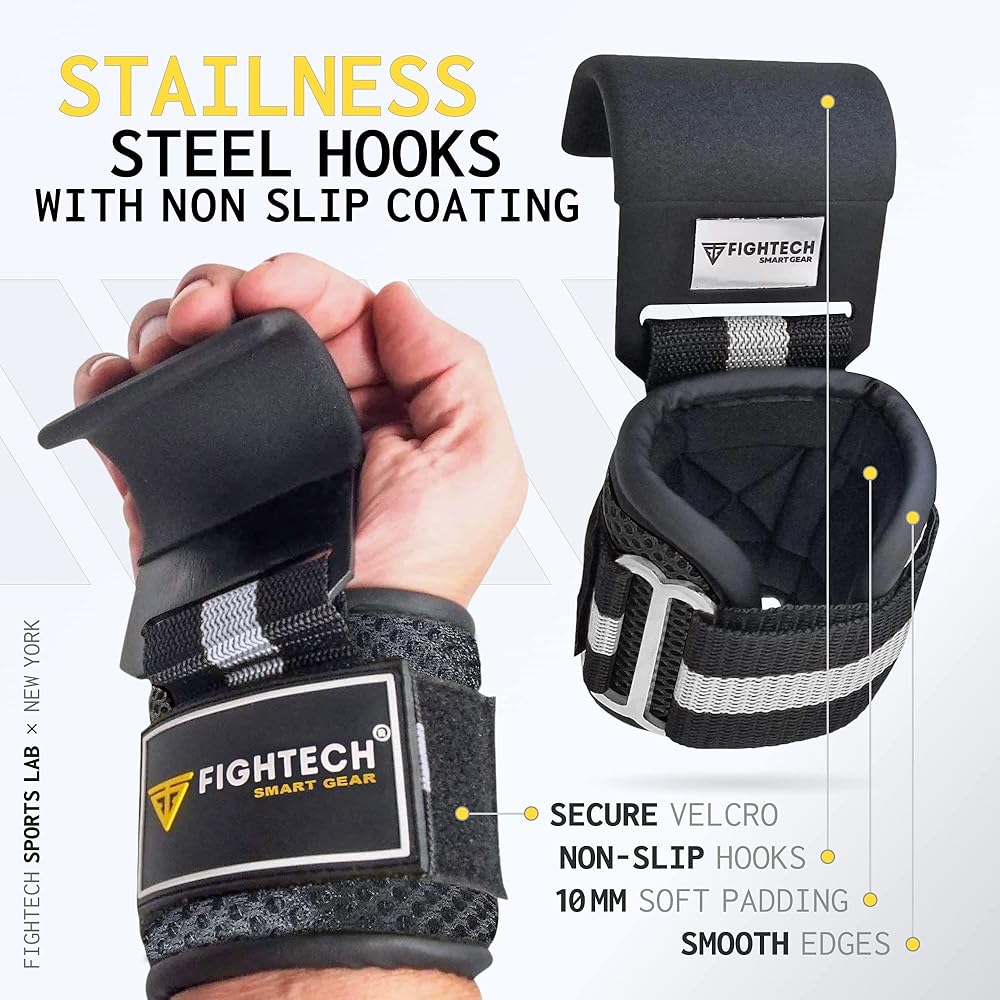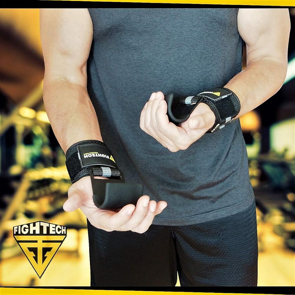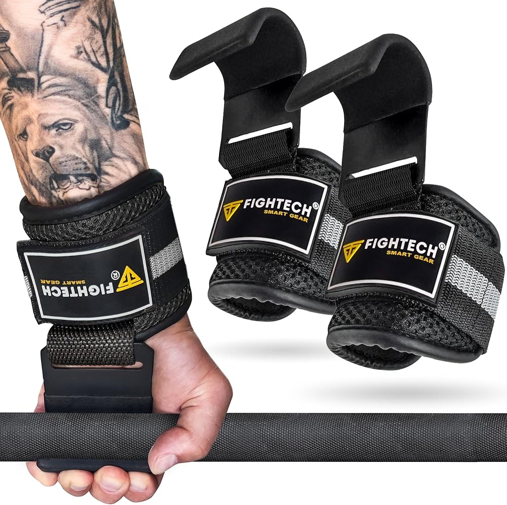 خطافات رفع الأثقال ومقابض سحب من FIGHTECH - خطافات رفع متعددة الاستخدامات مع أشرطة خطافية متينة لدعم خطافات الطاقة، ومقابض رفع معززة لأقصى تدريب على القوة