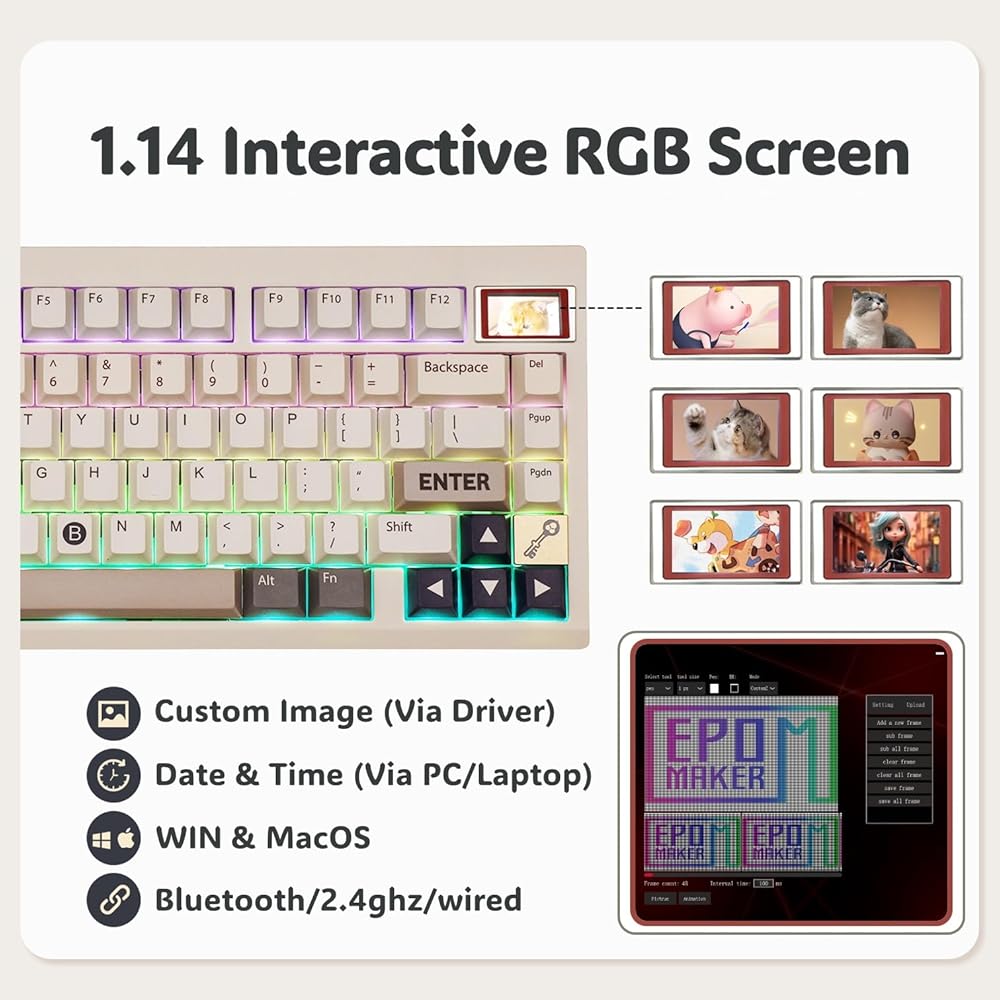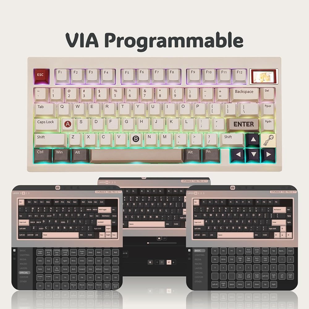 【EPOMAKER TH80 PRO V2: إعادة تعريف التخصيص والأناقة】نقدم لك EPOMAKER TH80 PRO V2، وهي ترقية مهمة تتجاوز حدود التخصيص والأسلوب. بناءً على أساس سابقه، أصبح TH80 PRO V2 الآن قابلاً للبرمجة بالكامل عبر VIA، مما يوفر تحكمًا وتخصيصًا لا مثيل لهما لكل مفتاح. ولكن هذا ليس كل شيء - فهو يقدم أيضًا شاشة RGB مخصصة، مما يحول لوحة المفاتيح الخاصة بك إلى لوحة نابضة بالحياة للتعبير والأداء الوظيفي.
