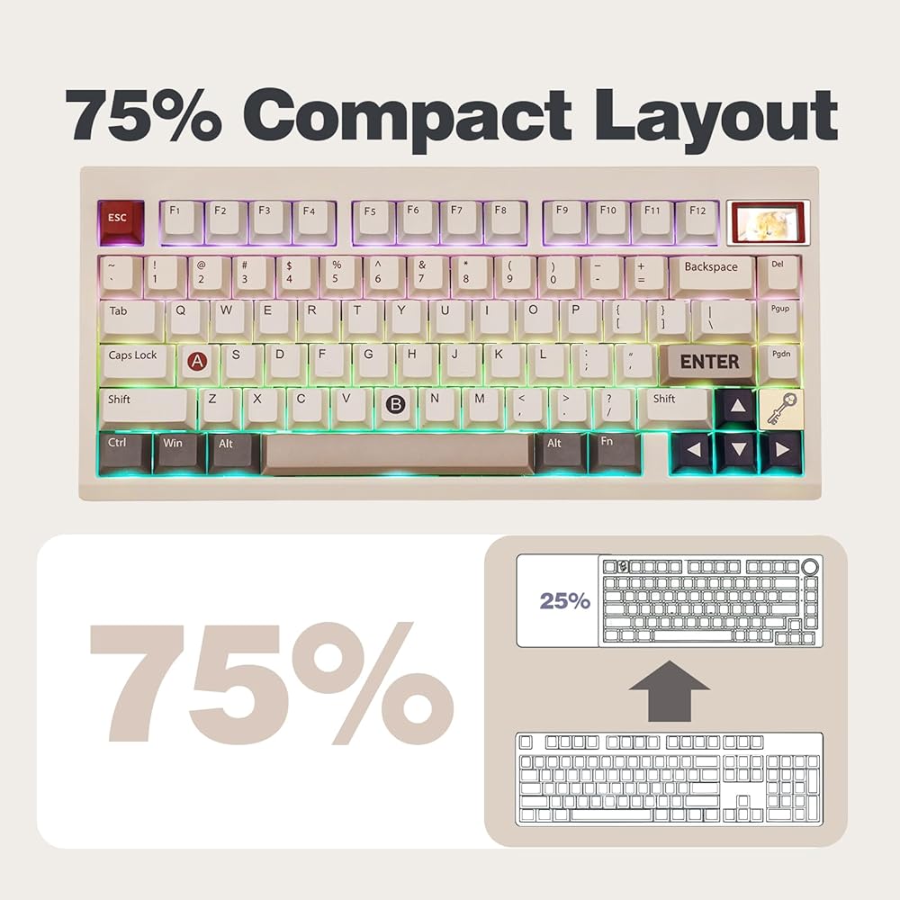 【تخطيط مدمج بنسبة 75%، هيكل مثبت على الحشية】يتميز جهاز EPOMAKER TH80 PRO V2 بتصميم أنيق بنسبة 75% مع 79 مفتاحًا أساسيًا، مما يحقق توازنًا مثاليًا بين التصميم البسيط والوظائف الكاملة. يعد هيكل الحشية إطارًا فائق المرونة، مما يضمن أن تكون كل ضغطة مفتاح متسقة ومستقرة وسلسة بشكل ملحوظ مع توزيع الضغط على النحو الأمثل، مما يتيح دقة اللمس في كل ضربة.