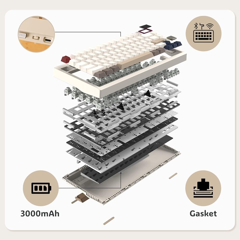 【اتصال ثلاثي الأوضاع】مصمم ببراعة ليناسب نمط حياتك الديناميكي، يوفر EPOMAKER TH80 PRO V2 ثلاثة خيارات اتصال: قوة سلك USB-C، وخفة الحركة 2.4 جيجا هرتز وحرية بلوتوث 5.0 اللاسلكية. يمكنك التبديل بسهولة بين الأجهزة والمهام بسهولة لا مثيل لها. تكمن في قلبه بطارية مرنة تبلغ سعتها 3000 مللي أمبير في الساعة، وهي مصدر طاقة يضمن استمرار تدفق البيانات دون انقطاع، سواء في خضم الألعاب أو وسط موجة إبداعية أو أثناء جلسات العمل الماراثونية