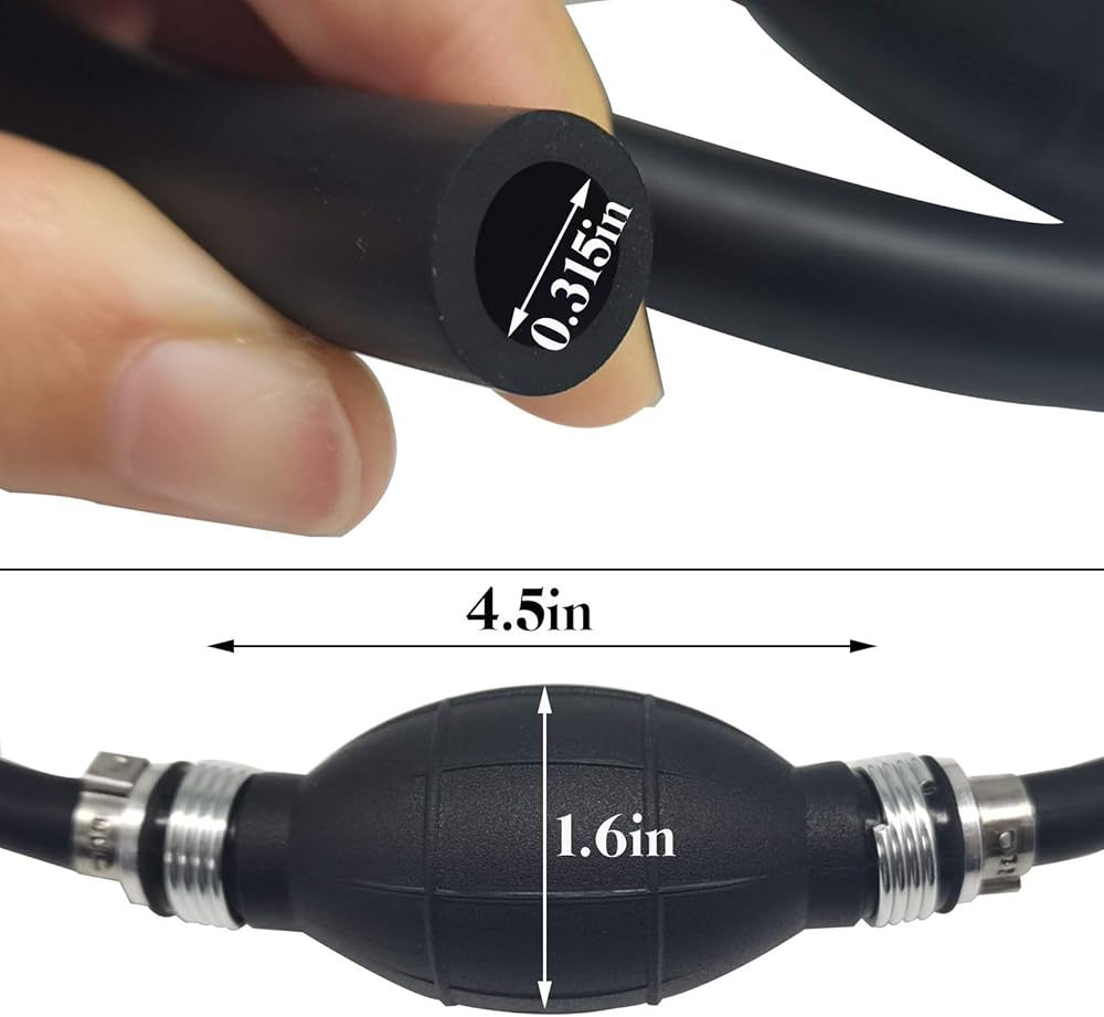 مجموعة خط الوقود، خط خرطوم 5/16 بوصة، مجموعة وقود القوارب البحرية الخارجية مع لمبة أولية ومشابك خرطوم فولاذية 6FT (5/16 بوصة-مطاط)