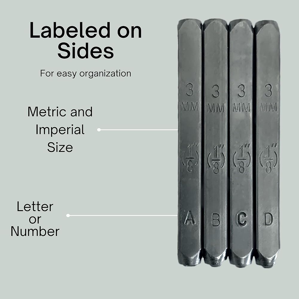 طوابع معدنية شديدة التحمل بأحرف وأرقام 3 مم للختم على الألومنيوم والنحاس والنحاس ومعظم الفراغات المصنوعة من الفولاذ المقاوم للصدأ والمعادن الأخرى متوسطة الكثافة