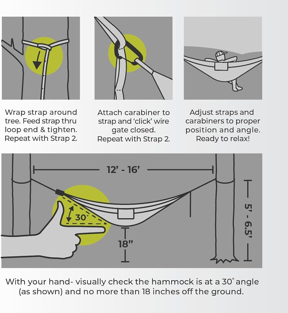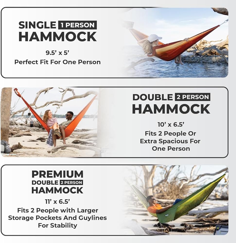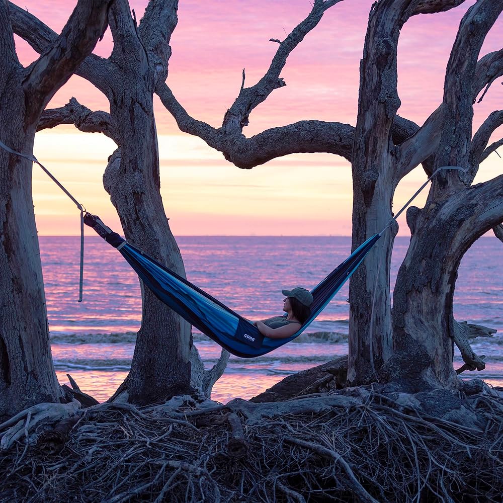 أرجوحة التخييم الأساسية | أرجوحة تخييم محمولة للسيارة مفردة أو مزدوجة | أساسيات التخييم المثالية للأماكن الخارجية والمشي لمسافات طويلة والسفر وحقائب الظهر | تشتمل على أشرطة شجرة وحلقات تسلق وحقيبة حمل
