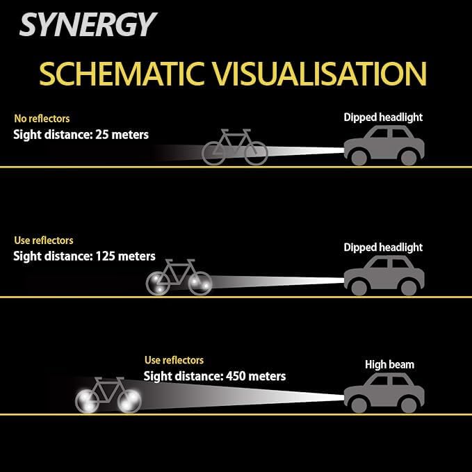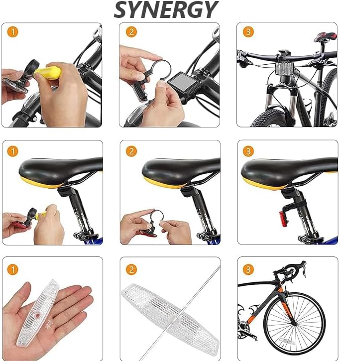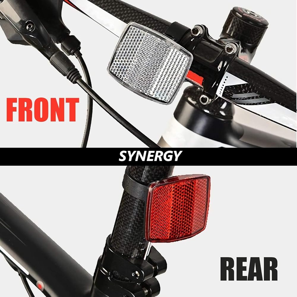 مجموعة عاكسة وفيرة: تشتمل مجموعة العاكسات الأمامية والخلفية على قطعتين من العاكسات الأمامية باللونين الأحمر والأبيض، و4 قطع من عاكسات عجلة الدراجة، وهي وفيرة بما يكفي لتلبية متطلبات الاستخدام الخاصة بك أثناء الركوب الليلي
