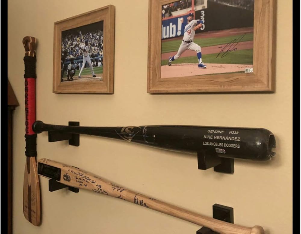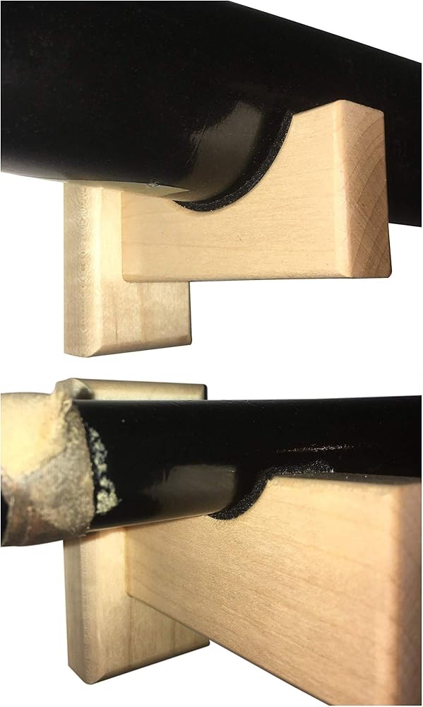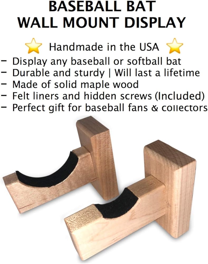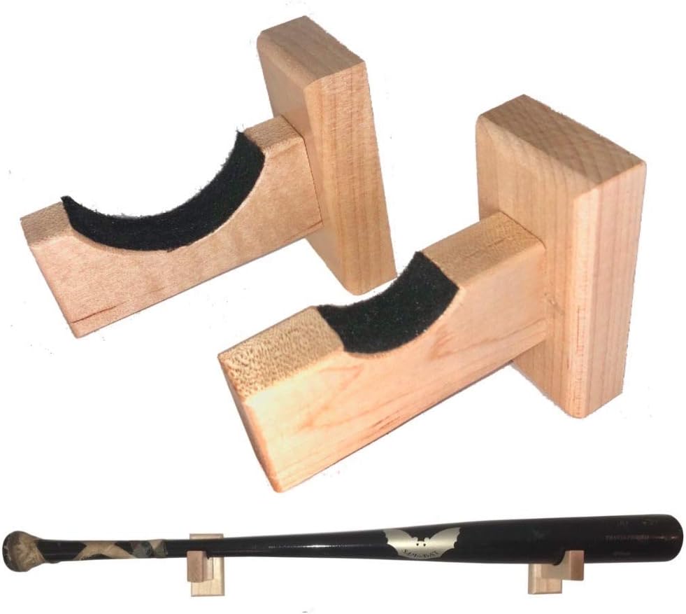 حامل حائط لعرض مضرب البيسبول - مصنوع يدويًا في الولايات المتحدة الأمريكية من خشب القيقب الصلب مع بطانة لباد ومسامير مخفية - شماعة مضرب أفقية (طبيعية)