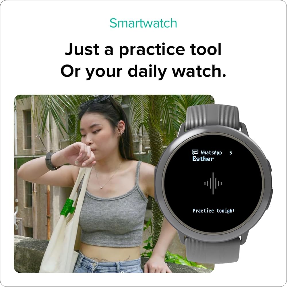 SMARTWATCH — استخدم Core 2 فقط أثناء ممارسة الموسيقى. أو ارتديها كساعتك اليومية وابق دائمًا على اتصال بهاتفك الذكي. يعرض Core 2 الإشعارات والمكالمات، وأثناء الاستماع إلى الموسيقى، يمكنك استخدامه كجهاز تحكم عن بعد لتبديل الأغاني أو ضبط مستوى الصوت. كما يأتي مع منبه ومؤقت وتطبيق ساعة توقيت.