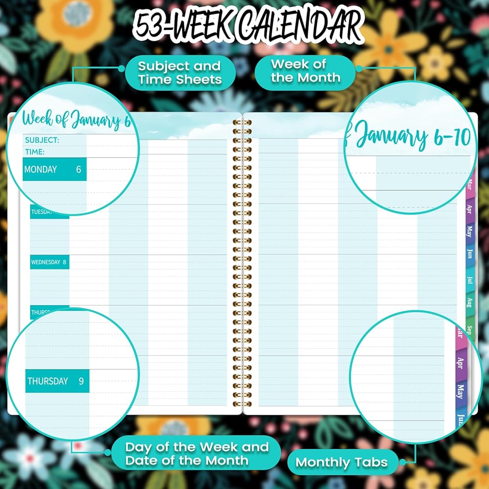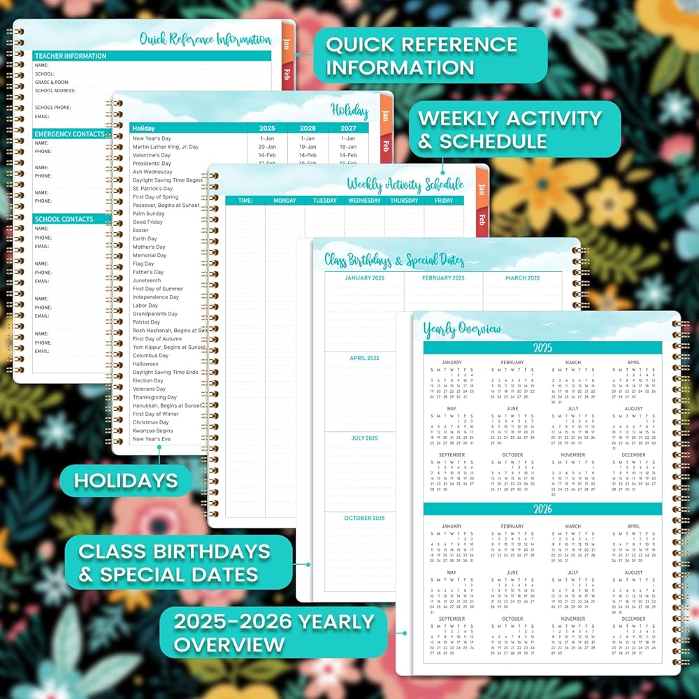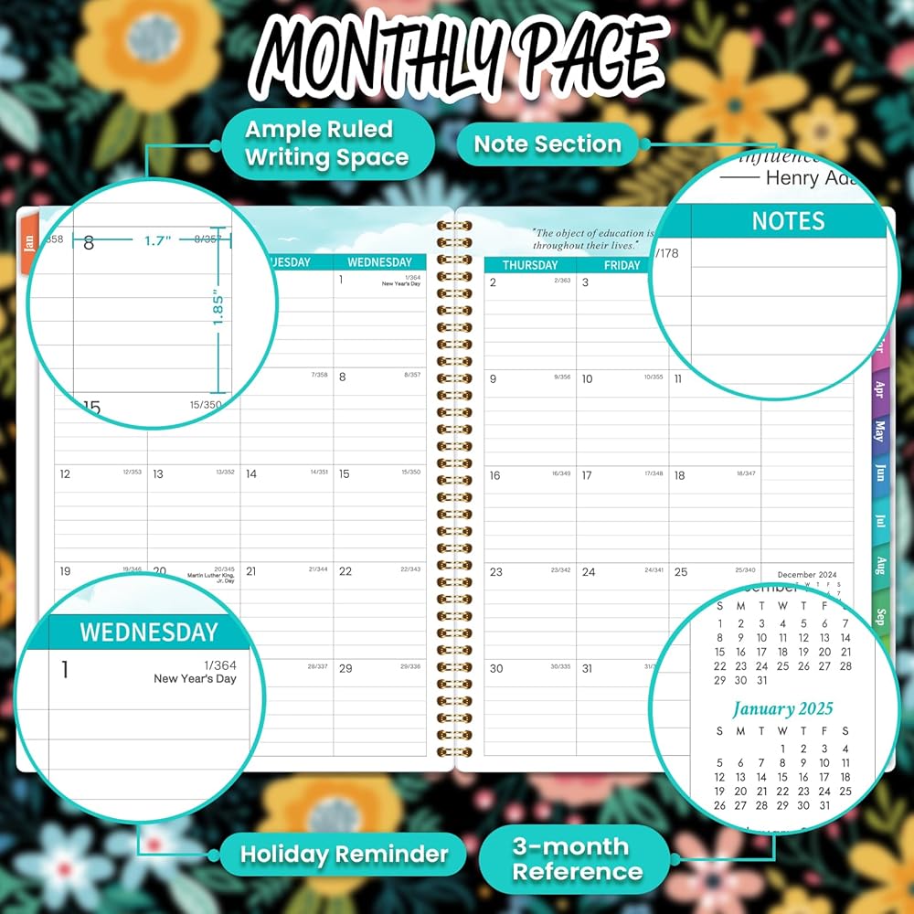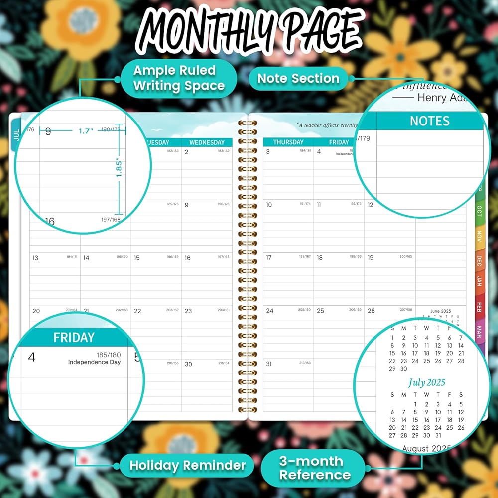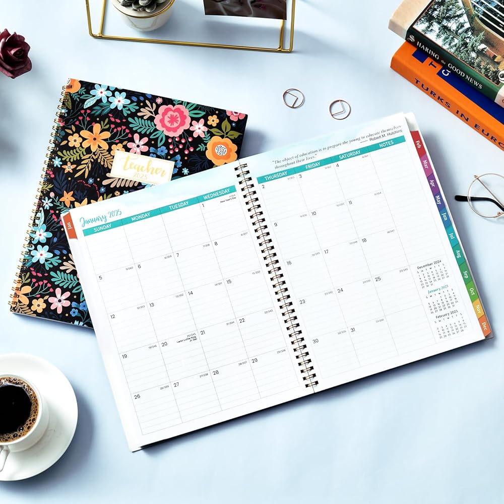 🔮 تصميم عملي وورق فاخر - علامات تبويب شهرية لاصقة | غطاء قوي ومرن | ربط قوي بسلك مزدوج | التقويم المرجعي | الجيب الداخلي | اقتباسات ملهمة | تاريخ جوليان | ورق سميك ممتاز. كل هذا في مخطط المعلم 2024-2025 سيجعل حياتك أكثر فعالية ويساعدك على أن تصبح أفضل نسخة من نفسك.