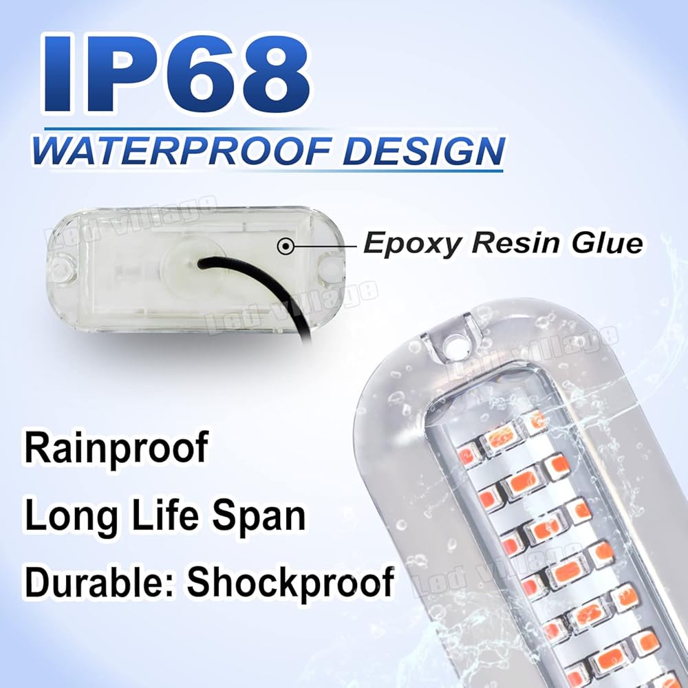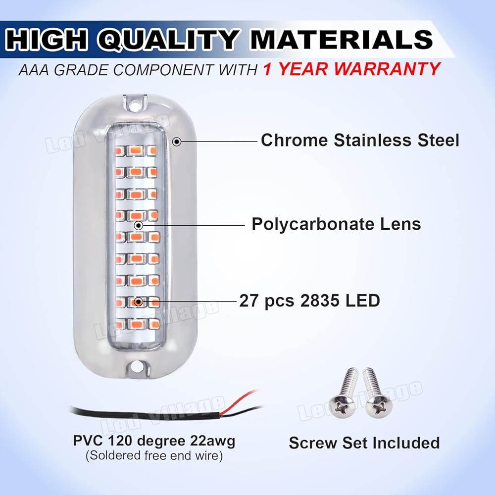 تم تضمين قطعتين من أضواء الملاحة البحرية البيضاء، و27 غطاء LED وغطاء من الفولاذ المقاوم للصدأ في العبوة. تستهلك الأضواء طاقة أقل، وتدوم لمدة تصل إلى 50,000 ساعة وتحسن الرؤية لرحلة أكثر أمانًا في الليل.