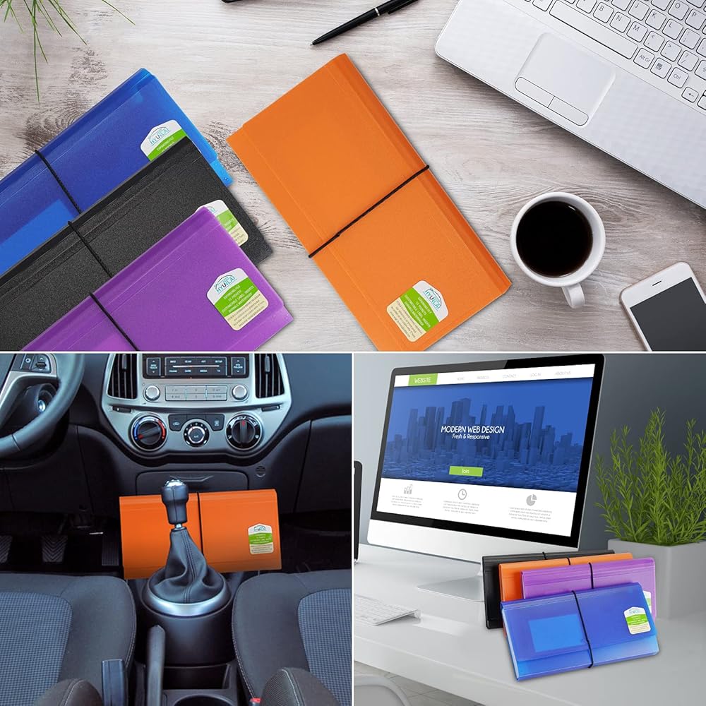 • ✿ سطح جميل: تأثير سطحي أنيق وغير لامع، حافظة للإيصالات تجعل حياة مكتبك ومنزلك أكثر راحة. عبوة من 4 قطع بألوان مختلفة: برتقالي/أسود/أزرق/أرجواني.