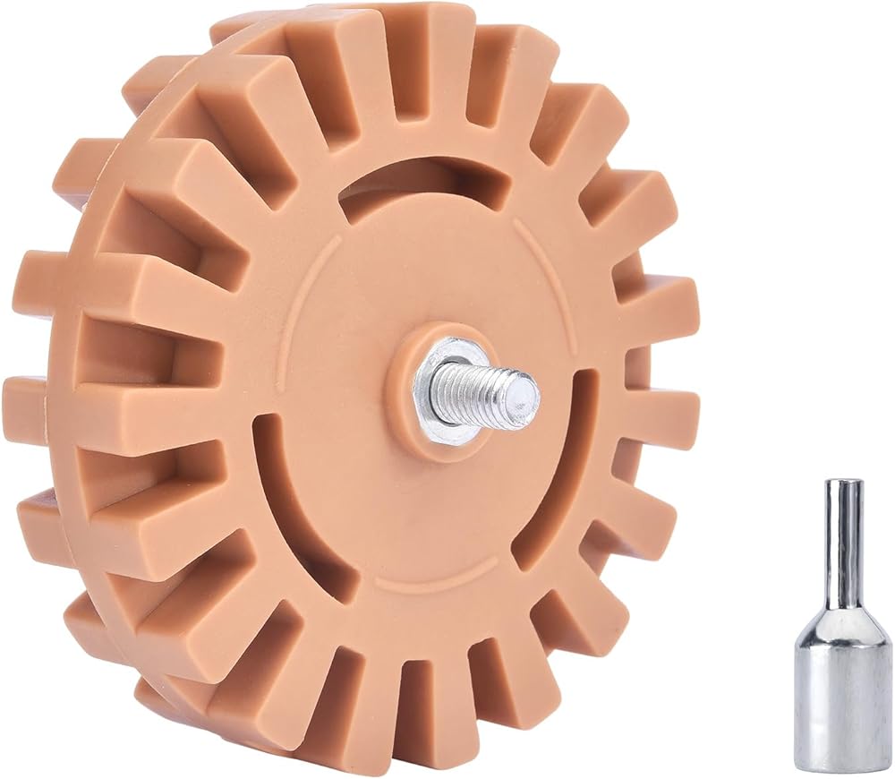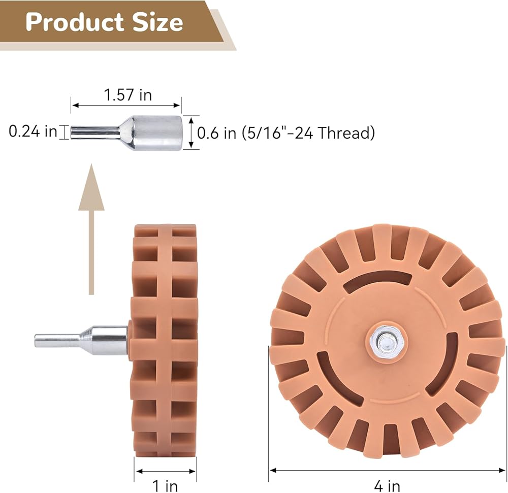 【الكمية】تتضمن العبوة عجلة إزالة لاصقة مقاس 10.16 سم ومحول. سهلة التركيب على المثقاب الكهربائي المنزلي أو المثقاب الهوائي.
