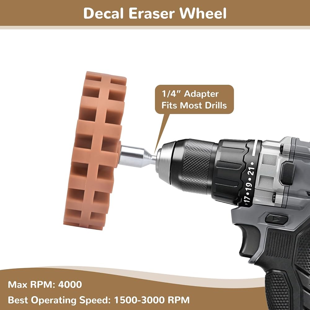 【سهلة الاستخدام】استخدم عجلة ممحاة الملصق لتطبيق ضغط خفيف على الجزء العلوي من الملصق، والعمل ذهابًا وإيابًا حتى يتم إزالته. يمكن استخدامه مع مذيب خفيف لإزالة الغراء المتبقي والبقايا للحصول على أفضل النتائج. يمكن استخدام العجلة بحد أقصى 4000 دورة في الدقيقة، ولكنها تعمل بشكل أفضل بين 1500 إلى 3000 دورة في الدقيقة.